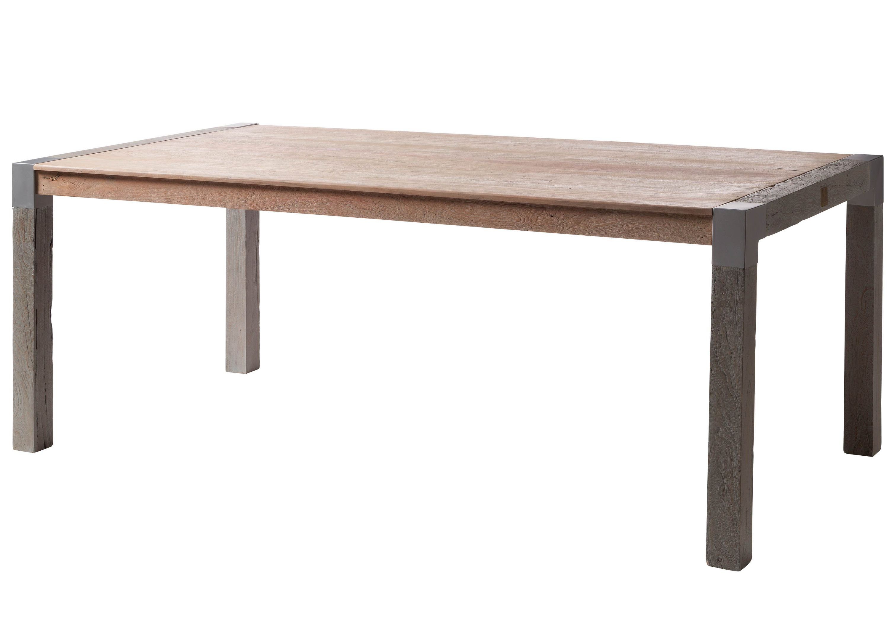 Dieser moderne Esstisch der Reihe AMSTERDAM ist aus Mango Hartholz gearbeitet. Bereits die tropische Ausstrahlung des Massivholzes wird auf den ersten Blick deutlich. Ein weiteres elegantes Extra stellen die Verstärkungen aus Eisen dar, die sich an allen vier Ecken des Tisches befinden und bis zu den schlanken und ebenfalls hübsch gemaserten Tischbeinen reichen.