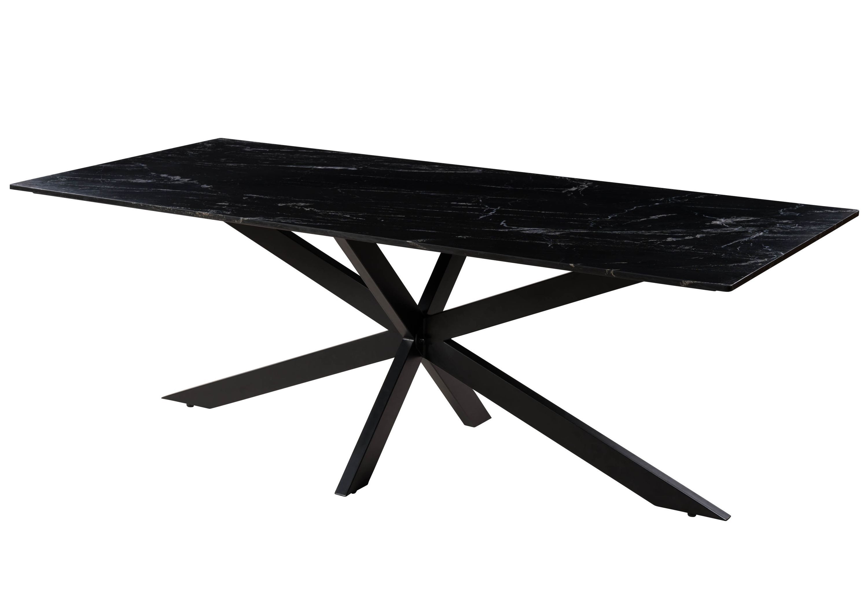 Dieser elegante Esstisch mit Marmor-Platte in Schwarz macht jede Mahlzeit zum Festessen. Durch die individuelle Zeichnung des Natursteins wird jeder Tisch zum Unikat mit luxuriöser Ausstrahlung. Das edle Gesamtbild komplementiert ein Kreuzgestell in anmutigem Schwarz. Es punktet mit seinem raffinierten Design und macht den Tisch zum passenden Einrichtungsgegenstand für Räume, die stilistisch vergangene Jahrhunderte widerspiegeln – aber auch für ein modernes Wohnambiente mit künstlerischer Note.