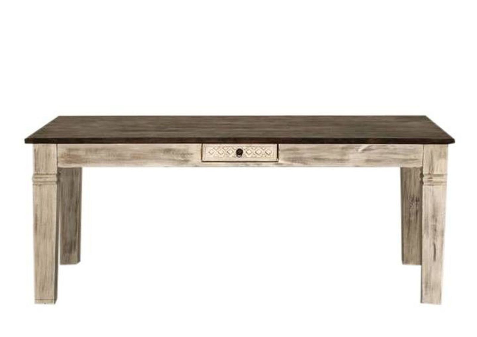 Lassen Sie sich von diesem Esstisch der Wohnserie CASTLE ANTIK verzaubern. Das schmucke Möbelstück ist aus Mango- und Akazienholz in vollmassiver Qualität gefertigt. Die dunkle Tischplatte aus Akazie gibt dem Tisch dabei einen noblen Charakter. Die Tischbeine hingegen bestehen aus weiß gewachster Mango. Durch die Auftragetechnik im Shabby-Stil kommt hier ein romantischer Touch ins Spiel – ganz, als hätte dieser Esstisch schon Jahrhunderte in einem alten Schloss verbracht.