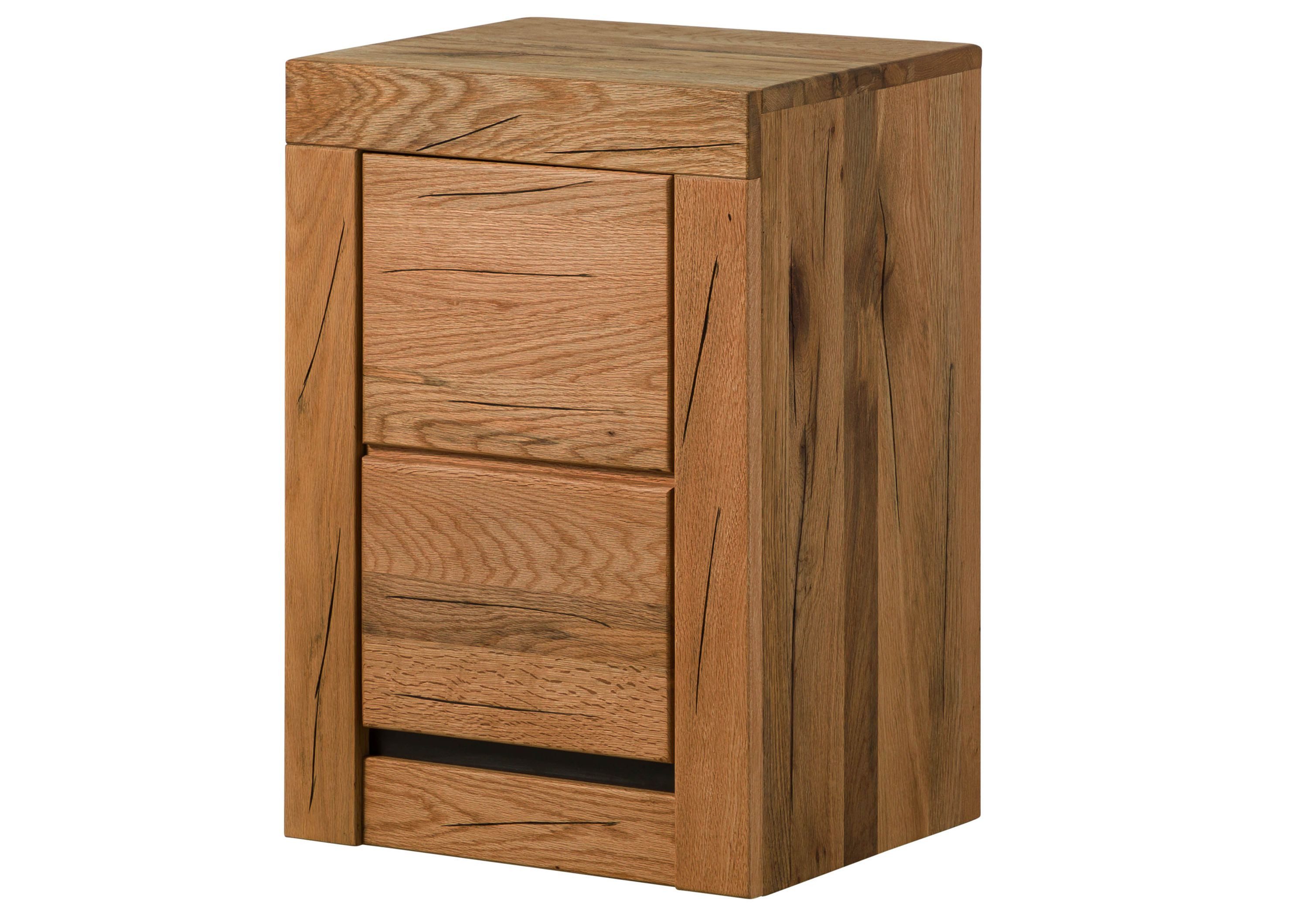 Dieser schmale Bad-Hängeschrank aus massiver Eiche besticht durch seine natürliche Maserung mit charakteristischen Rissen. Die geölte Oberfläche betont den rustikalen Charme und macht jedes Stück zu einem Unikat.