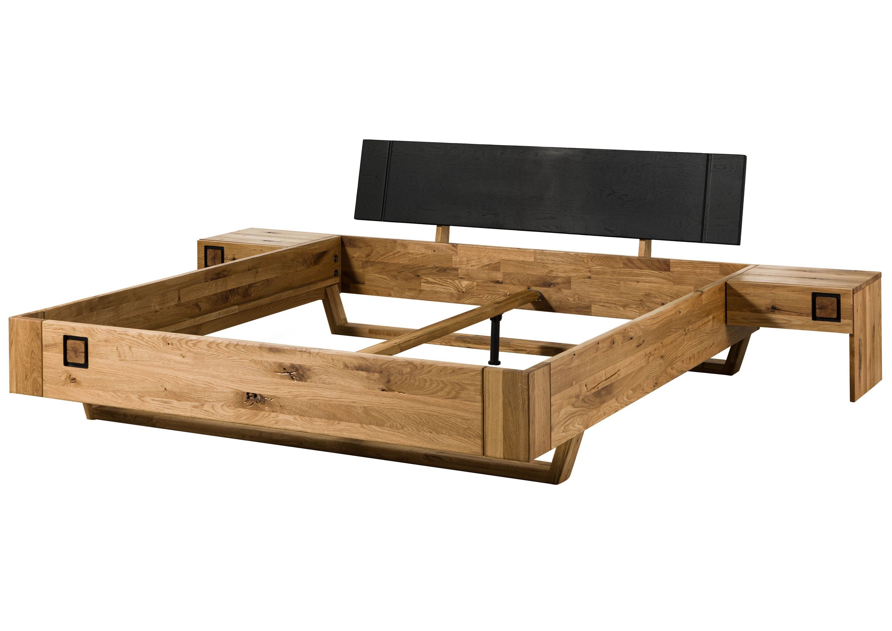 So wird das Schlafzimmer zum Vorzeige-Raum: Dieses luxuriöse Bett aus massiver Eiche stellt die Einzigartigkeit der Natur gekonnt zur Schau. Auffällige Maserungslinien verlaufen über die gesamte geölte Oberfläche des Bettgestells – mal in horizontaler, mal in vertikaler Ausrichtung. Nach innen gerichtete Holzkufen heben das Bett beinahe unsichtbar an, während aufmerksamkeitsstarke Details aus Hirnholz und das edle, schwarz lackierte Kopfteil alle Blicke auf sich ziehen.