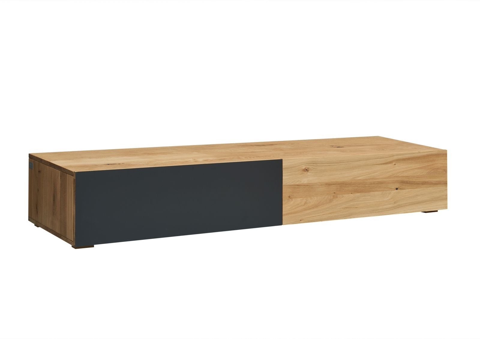Großstadtflair oder natürliches Design? Bei diesem TV-Lowboard aus der Möbelserie FRANKFURT brauchen Sie sich nicht zu entscheiden: Designer Erik Quicker hat hier edles Naturholz und hochwertigen Kunststoff vereint. Das Laminat in schickem, dunkelgrauem Finish überzeugt mit seiner samtweichen Haptik. Zusätzlich ist das Material des Lowboards höchst strapazierfähig und kratzfest. Die beiden Seiten lassen sich separat per Push-to-open-Mechanik öffnen.
