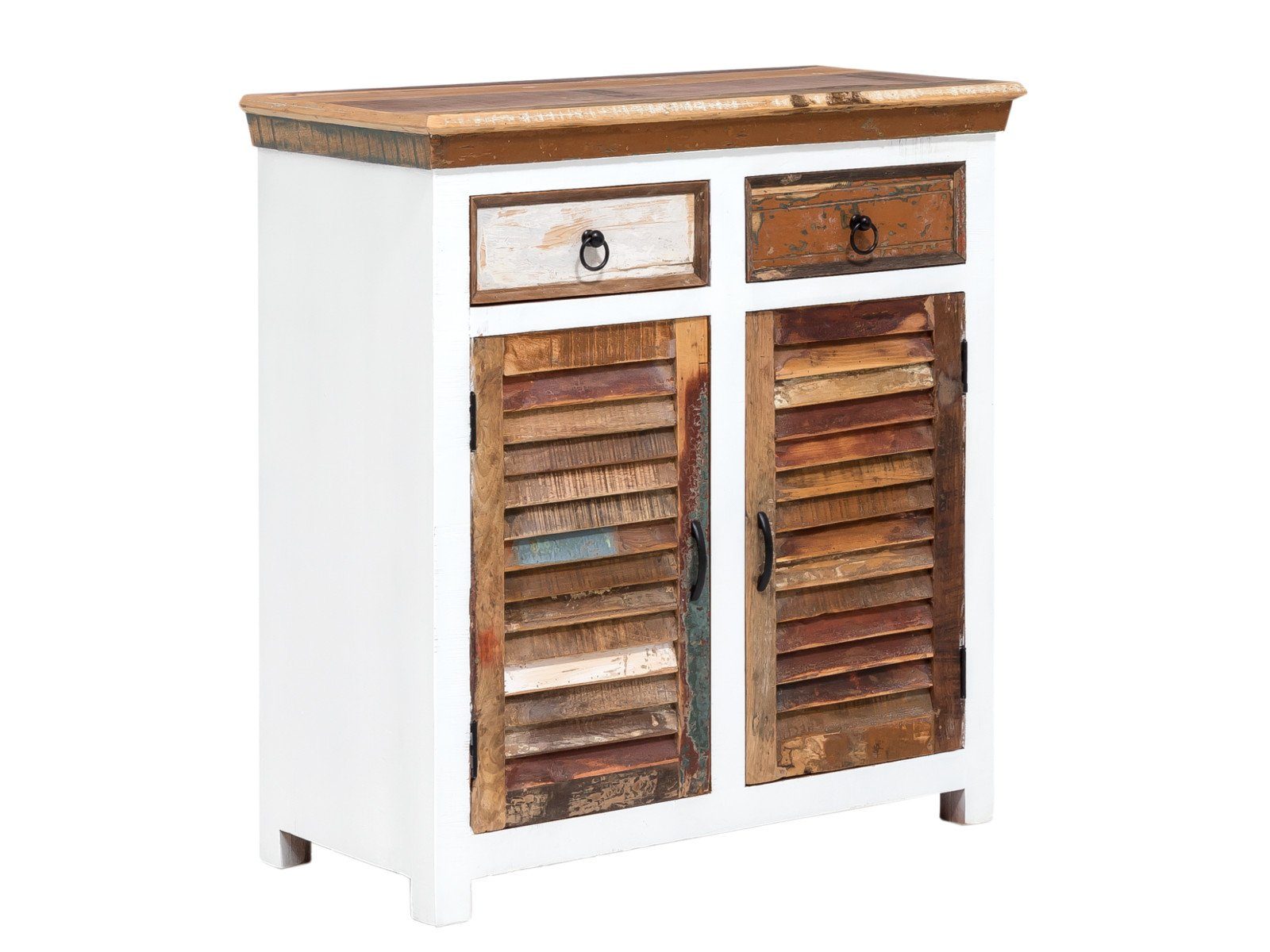 Hinweis: Die weißen Holzflächen sind bewusst rustikal gestaltet. Unebenheiten, Scharten und Löcher gehören zum Design und unterstreichen den charmanten, rustikalen Stil. Sie sind kein Mangel, sondern gewollt.