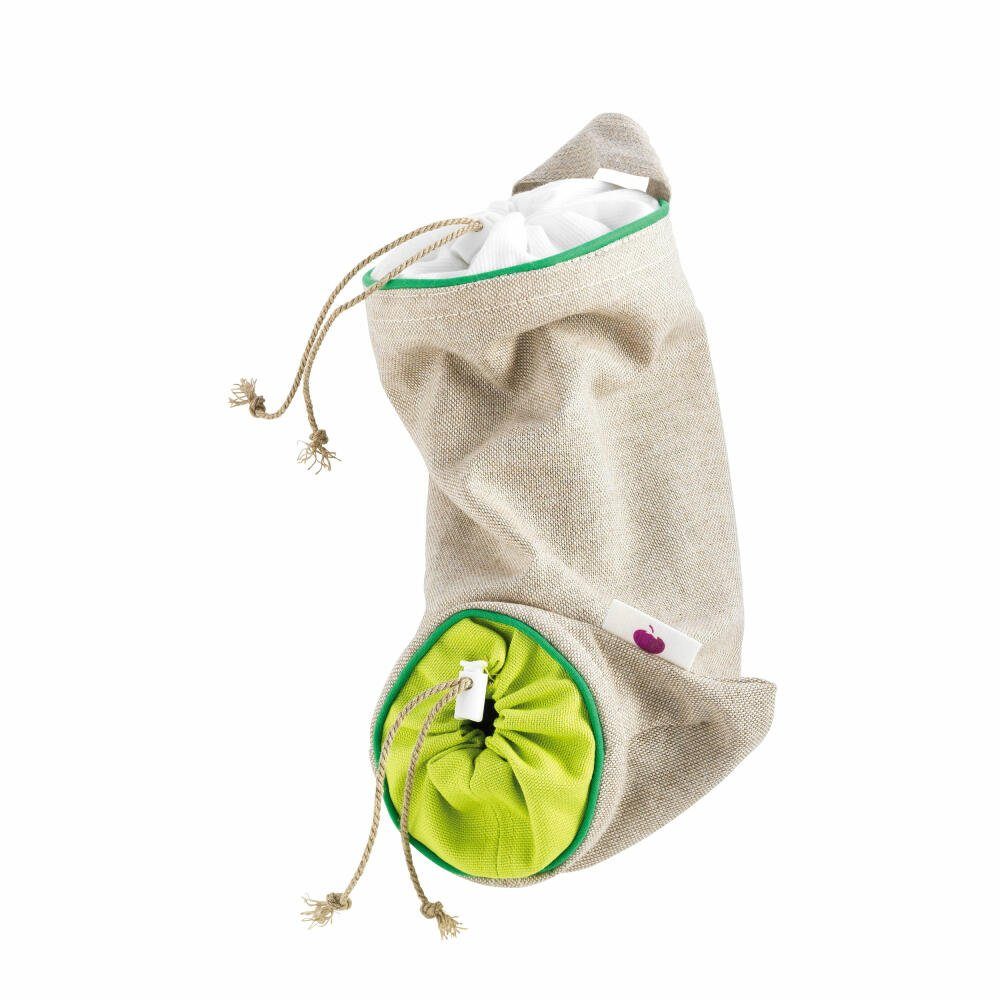 Lieferumfang | 1 Mastrad Gemüseaufbewahrungsbeutel Klein, Knoblauchbeutel, Gemüsebeutel, Gemüsesack, Stoff, Grün, F93362 |