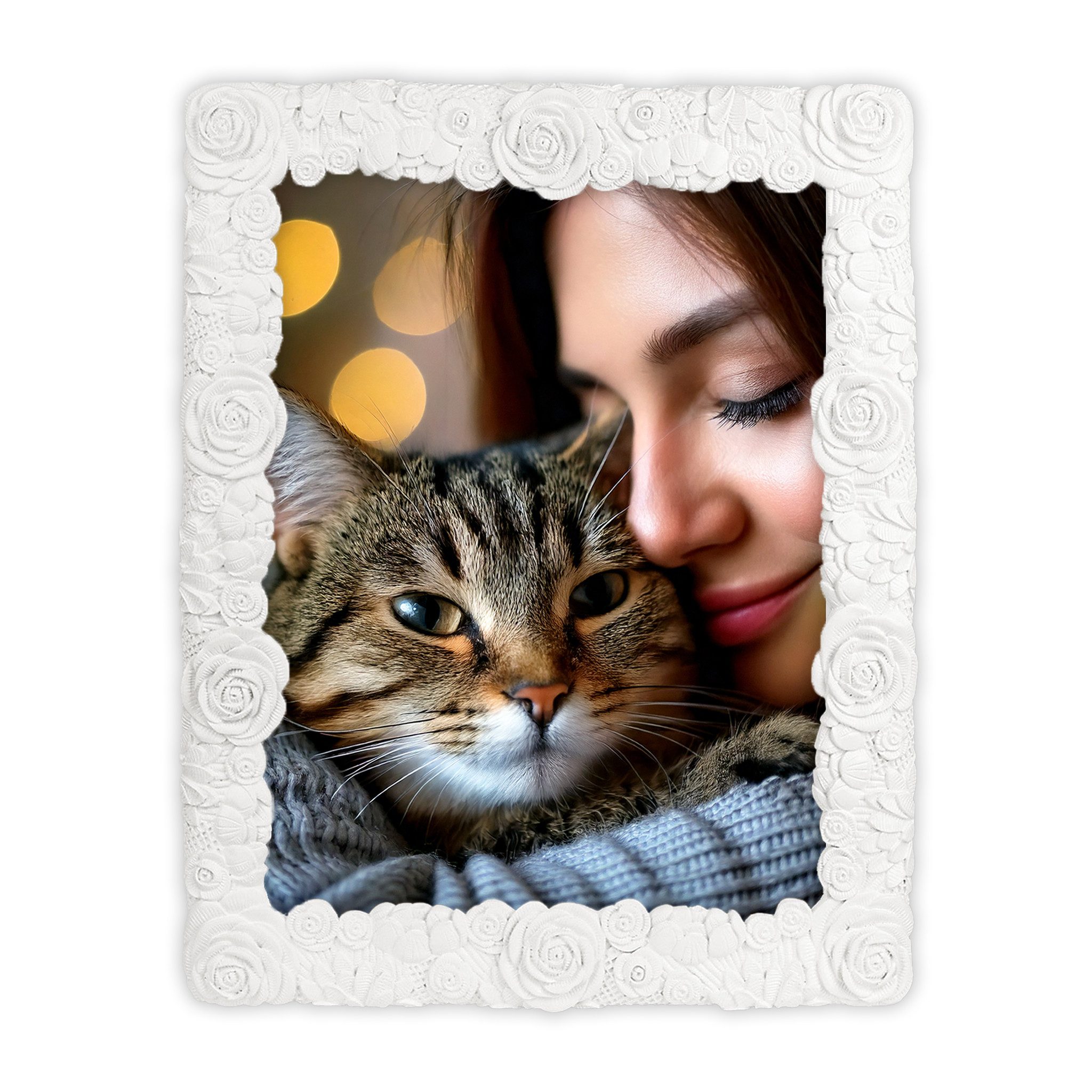 ZEIT FÜR GEFÜHLE - Dieser weiße Bilderrahmen mit floraler 3D Rosenstruktur macht aus deinem Foto ein emotionales Highlight - ideal für persönliche Fotogeschenke zum Hochzeitstag.