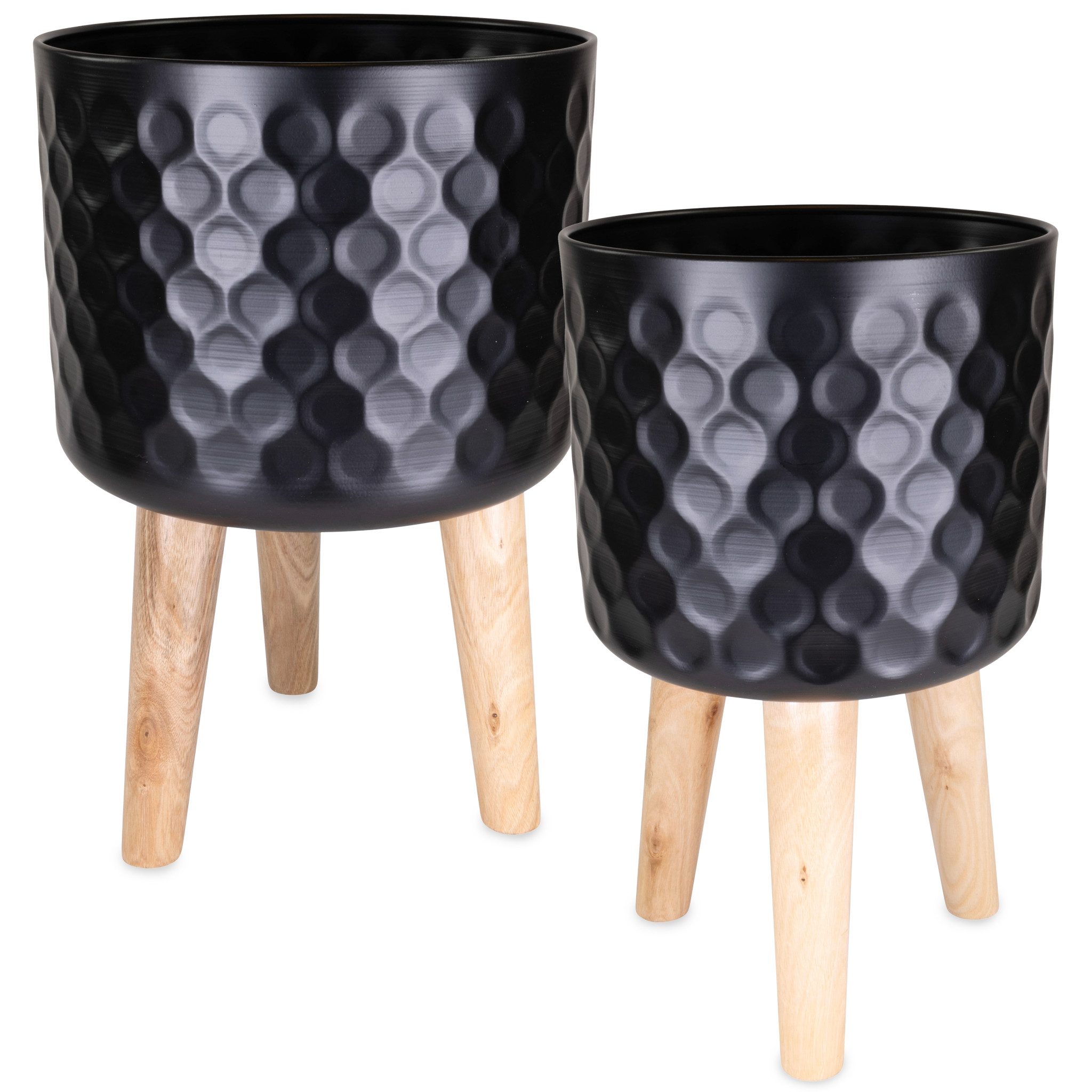 Material und Farbe Metall-Übertöpfe mit strukturierter Oberfläche Stabile, anschraubbare Holzfüße Farben: Beige oder Schwarz, moderner Skandi-Look