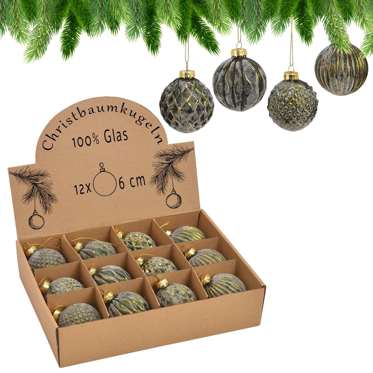 Edle Weihnachtskugeln aus Glas - festliche Eleganz in Grün und Gold Diese luxuriösen Weihnachtskugeln aus Glas bringen festlichen Glanz und Eleganz in Dein Zuhause. Die Kugeln sind in einem edlen Grün-Gold-Design gehalten und in zwei Größen erhältlich - Ø6cm und Ø10cm. Diese harmonische Farbkombination aus tiefem Grün und glänzendem Gold sorgt für eine warme, traditionelle und zugleich luxuriöse Ausstrahlung. Filigranes Design und hochwertige Verarbeitung Jede Kugel ist handwerklich perfekt gefertigt und mit glitzernden Details in Gold verziert, die das Licht wunderschön reflektieren. Die kunstvoll gestalteten Muster auf jeder Kugel sorgen für eine faszinierende Textur und machen sie zu einem absoluten Hingucker in Deiner Weihnachtsdekoration. Ob am Baum, als Hängedeko oder als stilvolles Element an Zweigen - diese Kugeln verleihen Deiner Festtagsdeko einen Hauch von Luxus. Verschiedene Set-Optionen für Deine Dekorationsideen Diese wunderschönen Weihnachtskugeln sind in verschiedenen Setgrößen erhältlich: 12er Set Ø6cm: Ideal für dezente und elegante Dekorationen. 24er Set Ø6cm: Perfekt, um den Baum üppig und stilvoll zu schmücken. 8er Set Ø10cm: Große Kugeln für beeindruckende Akzente. 16er Set Ø10cm: Sorgt für eine volle, luxuriöse Baumdekoration mit großen, edlen Kugeln. Festlicher Glanz für Dein Zuhause Mit den eleganten Farbtönen Grün und Gold verleihen diese Weihnachtskugeln Deinem Weihnachtsbaum oder Deinen Fenstern eine luxuriöse und festliche Atmosphäre. Die verschiedenen Größen und kunstvollen Muster machen sie zu einer vielseitigen und stilvollen Ergänzung Deiner Weihnachtsdekoration. Größenangaben Erhältlich in den Größen Ø6cm und Ø10cm, sowie in den Set-Optionen 12er, 24er, 8er und 16er. Material und Farbe Hergestellt aus hochwertigem Glas, verziert in Grün und Gold mit filigranen Glitzerdetails. Verfügbar in verschiedenen Sets und Größen.