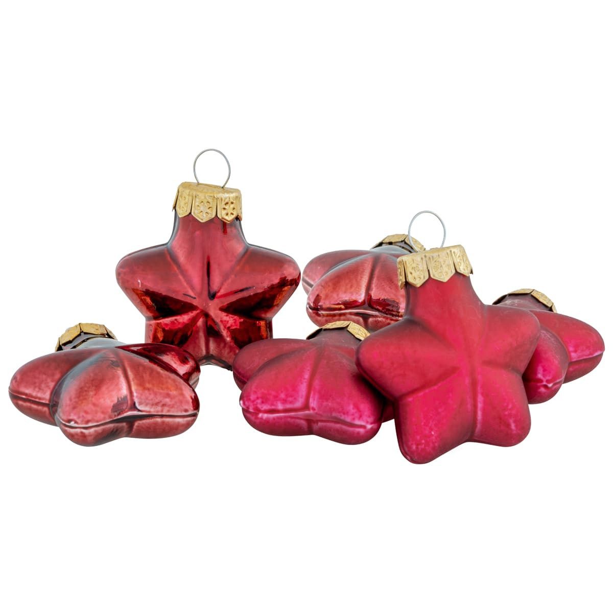 Weihnachtskugeln, Zapfen und Sterne aus Glas - Eleganter Christbaumschmuck in verschiedenen Größen und Farben Entdecke die stilvolle Weihnachtsdeko mit dieser Serie an Weihnachtskugeln, Zapfen und Sternen aus Glas. Ob in klassischem Rot, Bordeaux, Silber oder Gold - diese Anhänger bringen einen Hauch von Eleganz und Tradition in Deine Weihnachtsdekoration. Die Kugeln sind in verschiedenen Größen (von 40 mm bis 80 mm Durchmesser) erhältlich und passen perfekt an den Weihnachtsbaum, als Fensterdeko oder als besondere Hingucker in festlichen Arrangements. Jedes Set ist 3-fach sortiert und bietet Dir eine Auswahl an Formen und Größen, um Deinen Baum vollständig zu schmücken und zu dekorieren. Die hochwertigen Glas-Anhänger lassen sich wunderbar mit anderen Deko-Elementen kombinieren und fügen sich in jede Weihnachtsdekoration ein. Ob Du einen modernen oder klassischen Stil bevorzugst - diese Weihnachtsornamente verleihen jedem Raum das gewisse Extra. Verfügbare Farben und Größen: Farben: Rot, Bordeaux, Silber, Gold Kugeln: Ø 40 mm, Ø 57 mm, Ø 80 mm Zapfen: ca. Ø 23 x 55 mm Sterne: Ø 40 mm Material: Glas in verschiedenen Farben, 3-fach sortiert