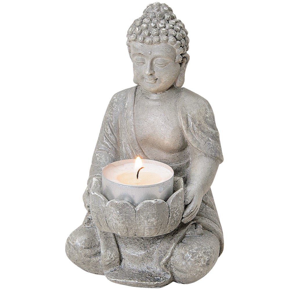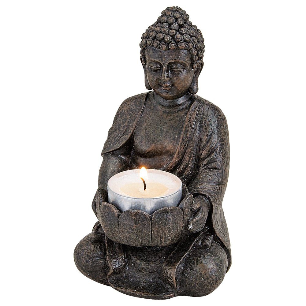 matches21 Entspannte Buddha Deko Figuren 2 Farben sitzend – Buddha Figuren Garten und Deko Wohnzimmer mit Teelichthalter – Buddha Figuren klein 14 cm