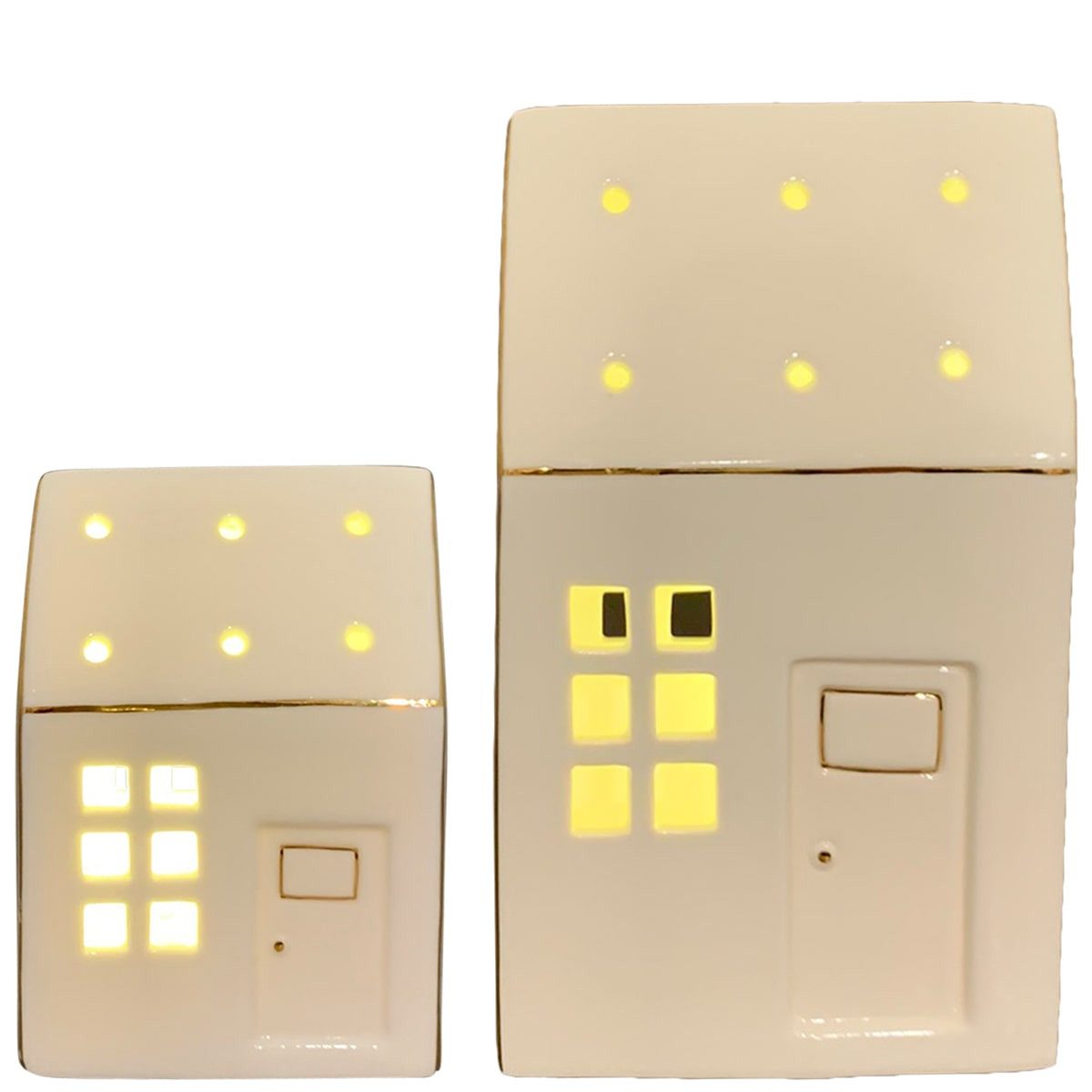 Dieses stilvolle LED-Lichthaus aus weißem Porzellan bringt den skandinavischen Charme in dein Wohnzimmer. Mit seiner warmen LED-Beleuchtung sorgt es für eine stimmungsvolle Atmosphäre und ist perfekt, um dein Weihnachtsdorf oder deine festliche Dekoration zu vervollständigen. Ob auf dem Sideboard, der Fensterbank oder als Highlight in deinem Regal - dieses Porzellanhaus passt perfekt zu deiner Weihnachtsdeko.