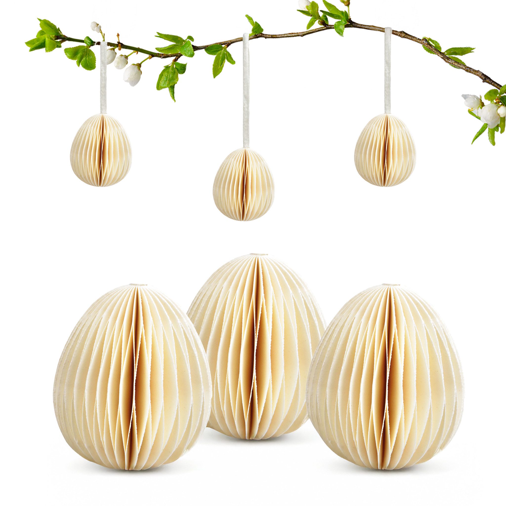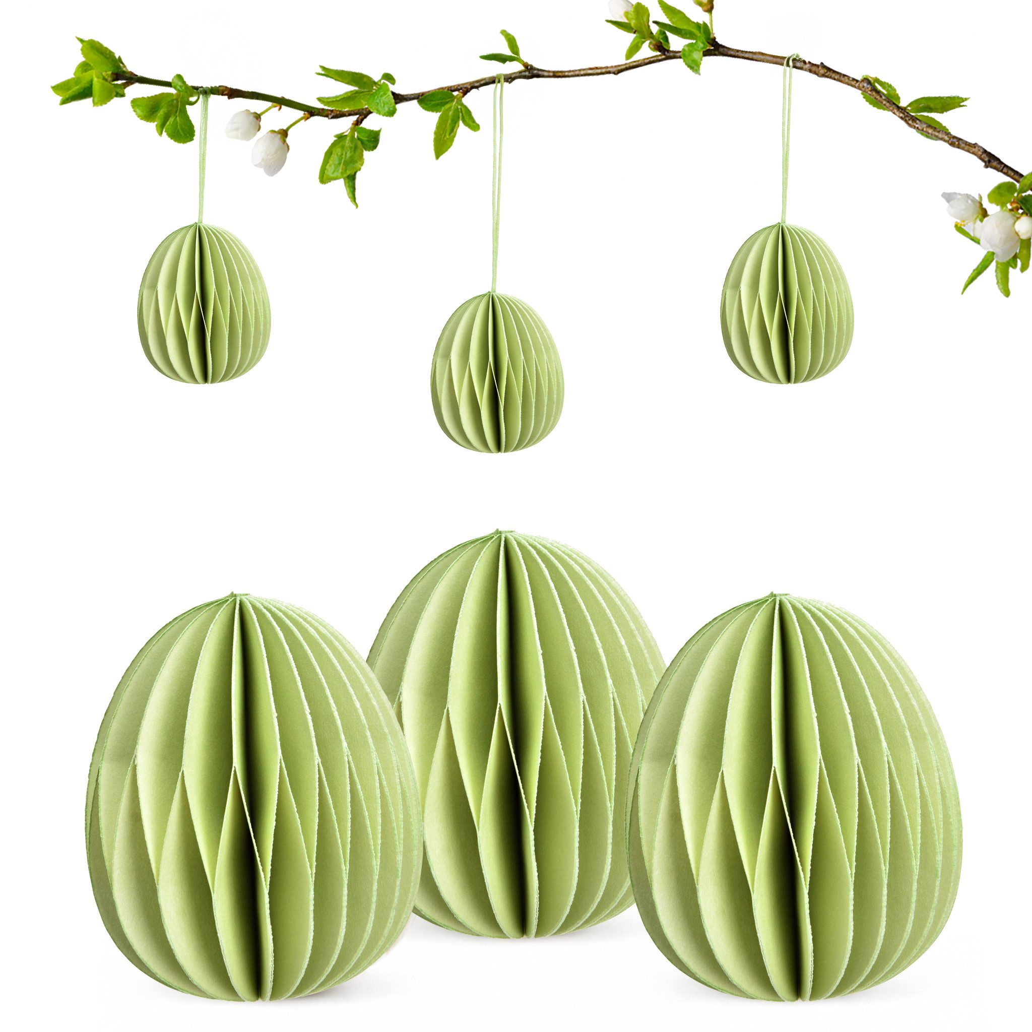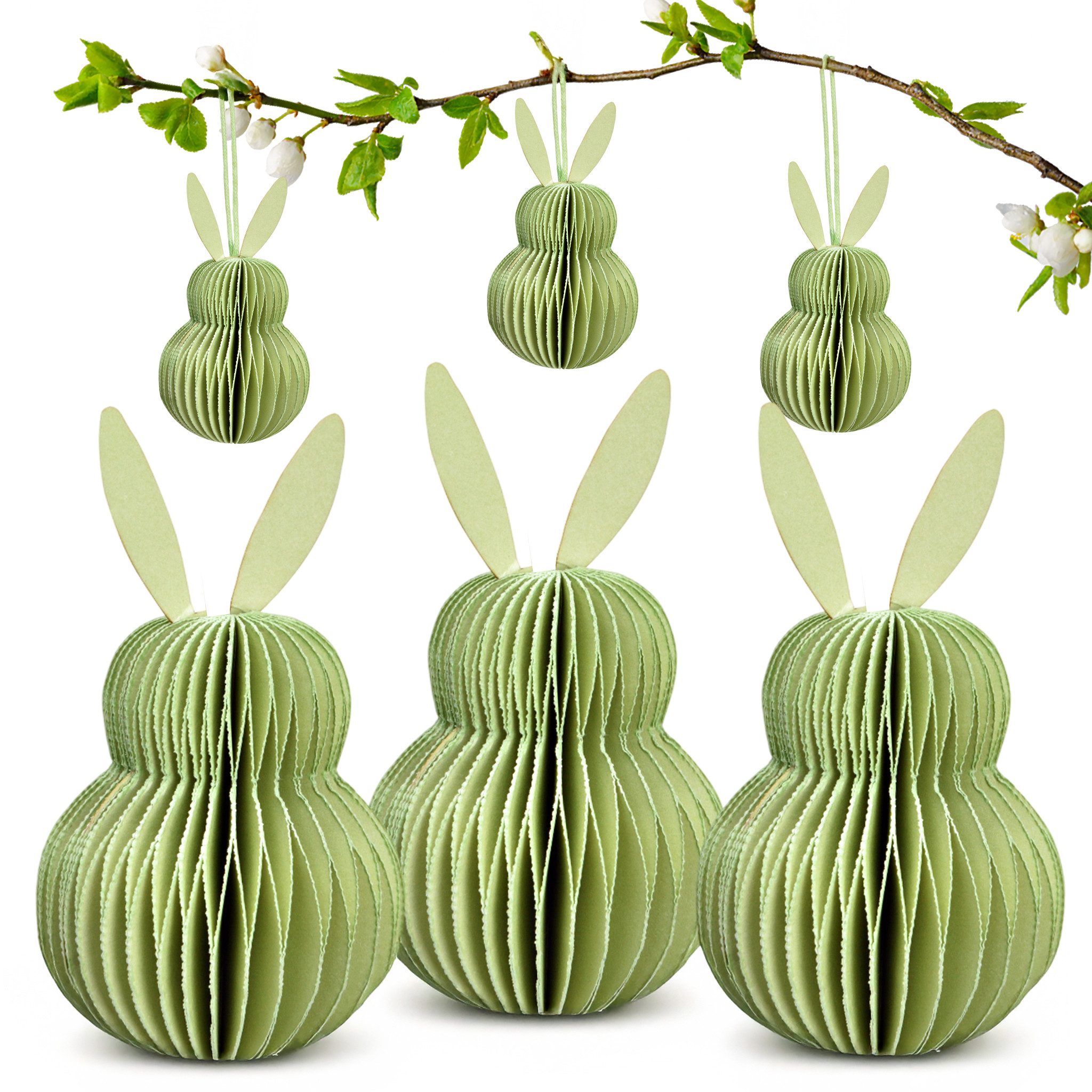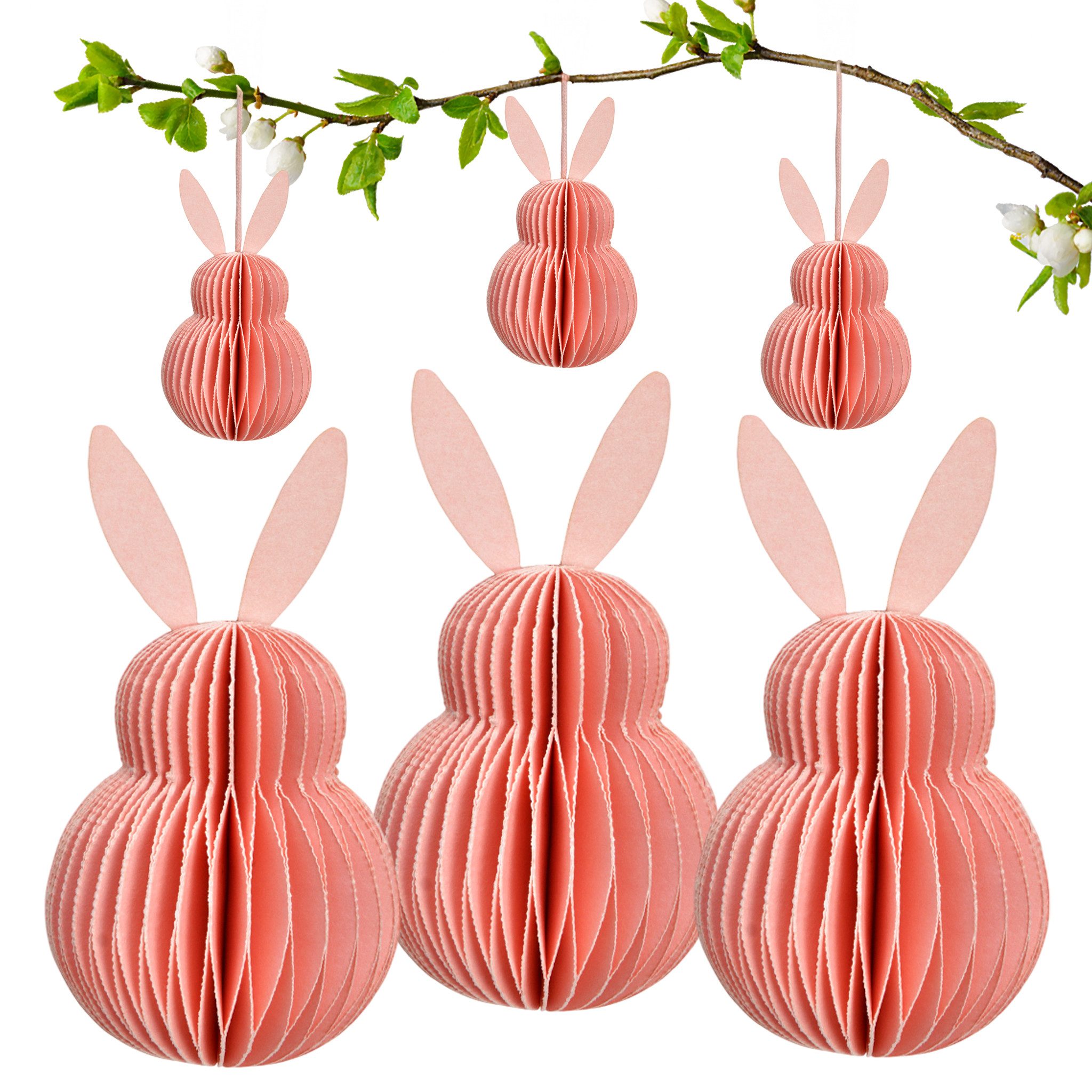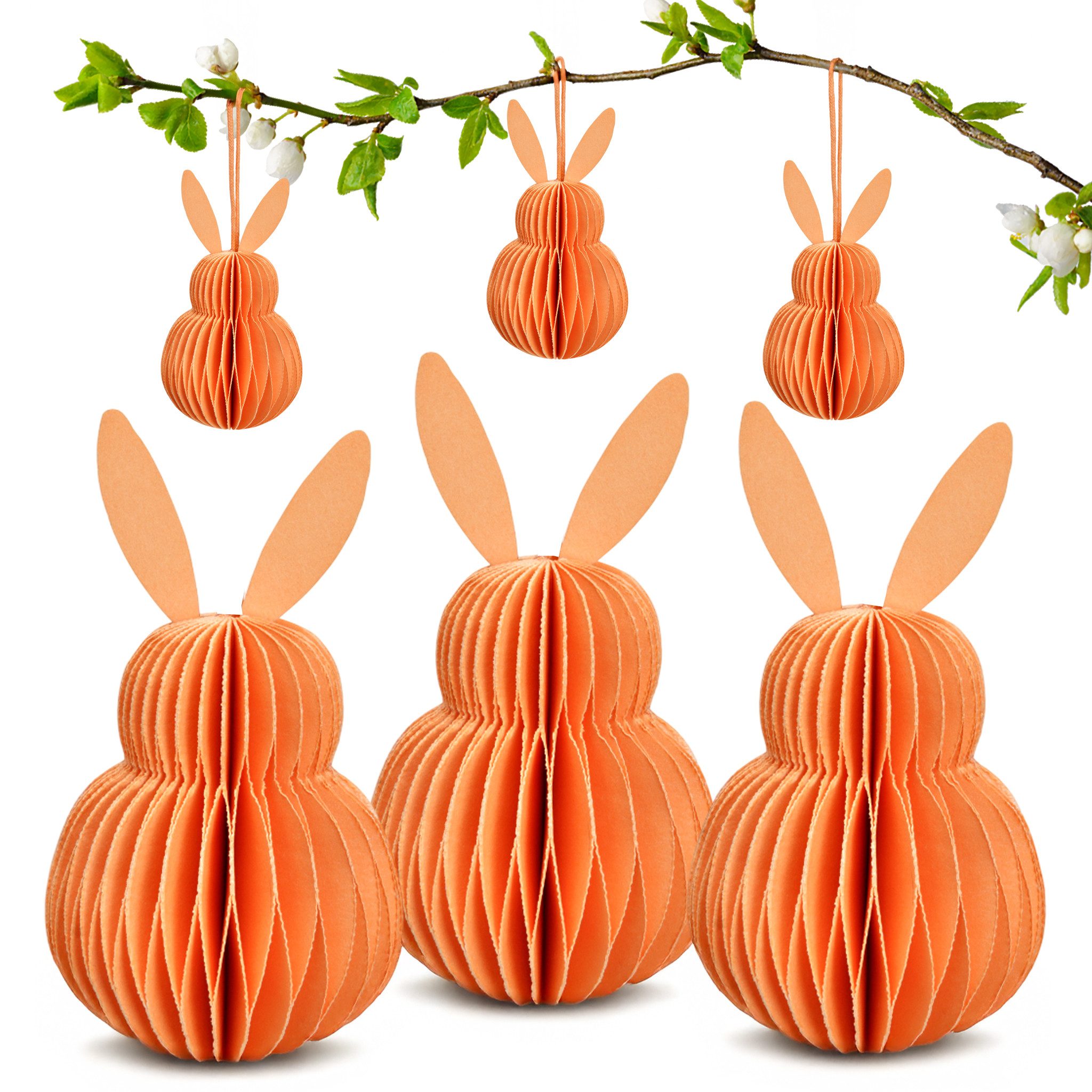 Filigrane Osterdeko - Federleichte Honeycomb-Anhänger aus Papier & Pappe Diese wunderschönen Osterhänger mit ihrer filigranen Wabenstruktur sind die perfekte Frühlingsdekoration. Ob am Osterstrauch, im Fenster oder als kreative Tischdeko - sie bringen eine spielerische Leichtigkeit in dein Zuhause. Perfekt für Fenster, Zweige & Tischdeko Mit seinem federleichten Design schwebt dieser dekorative Osterschmuck elegant im Raum und setzen wunderschöne Akzente. Besonders an Zweigen oder als Teil einer festlichen Ostertafel kommen sie wunderbar zur Geltung. Wähle deine perfekte Osterdekoration Unsere Honeycomb Osteranhänger gibt es in zwei Вариантыn: Ostereier (6 x 10 cm) Hasen (6 x 10 cm) Farben zur Auswahl: Weiß Gelb Orange Rosa Hellgrün Dunkelgrün Material & Farbe Material: Papier & Pappe Farben: Weiß, Gelb, Orange, Rosa, Hellgrün, Dunkelgrün