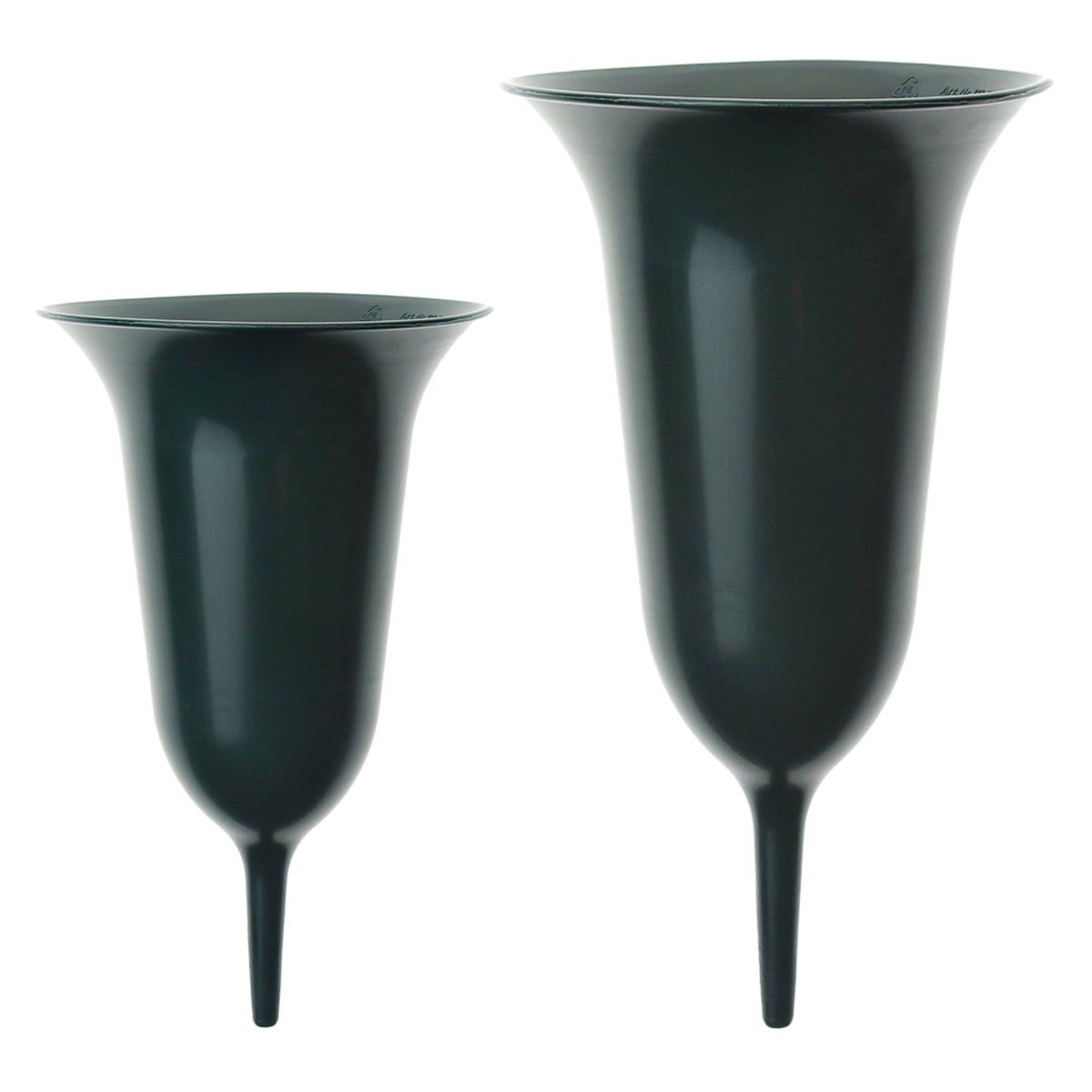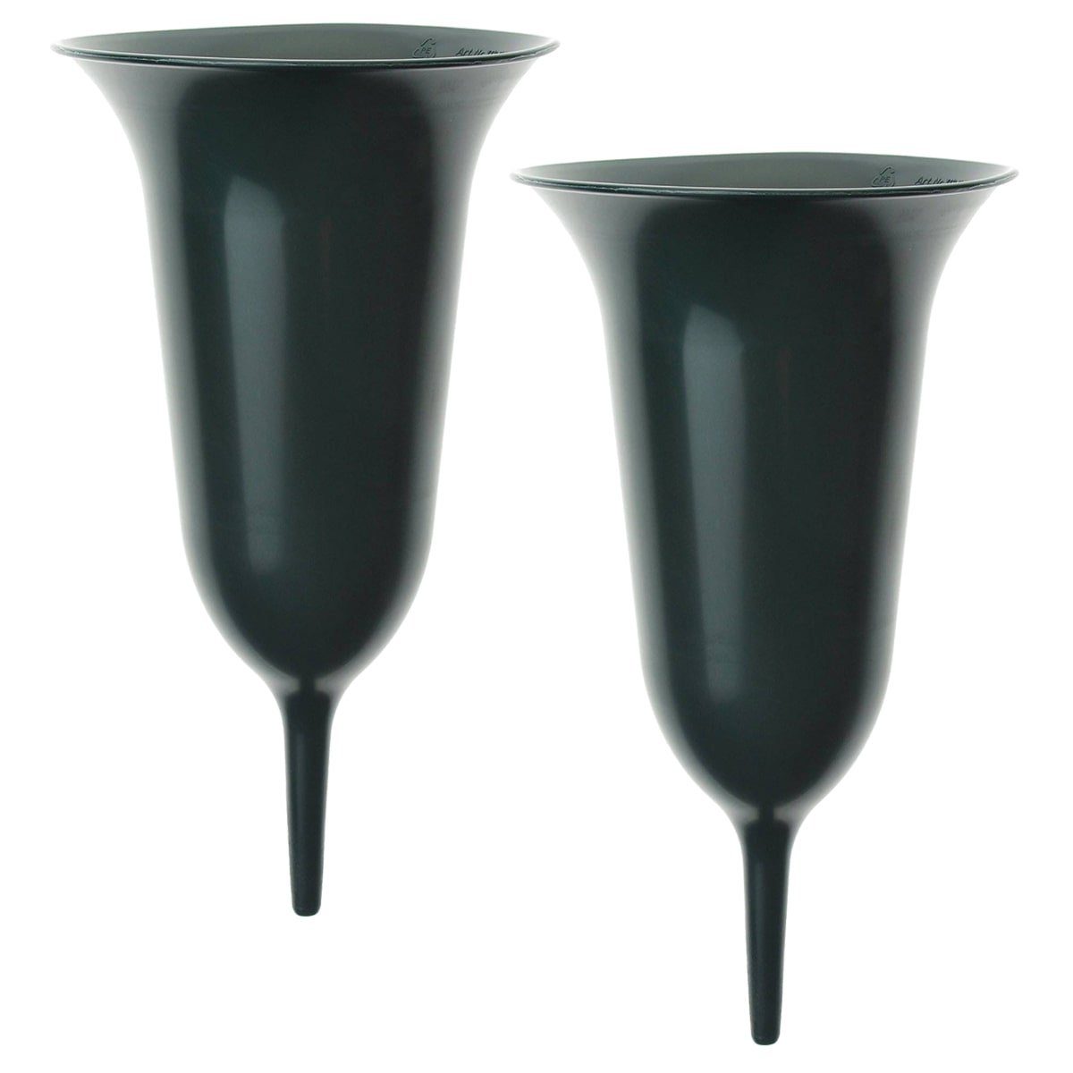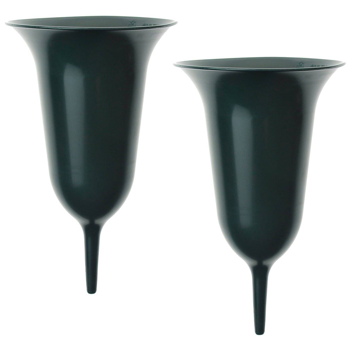 matches21 Grabvasen zum Stecken als Grabdekoration - Schöner Grabschmuck Friedhofsvasen Set aus wetterfestem Kunststoff in grün - Zwei Steckvasen für Friedhofs Dekoration in verschiedenen Ausführungen