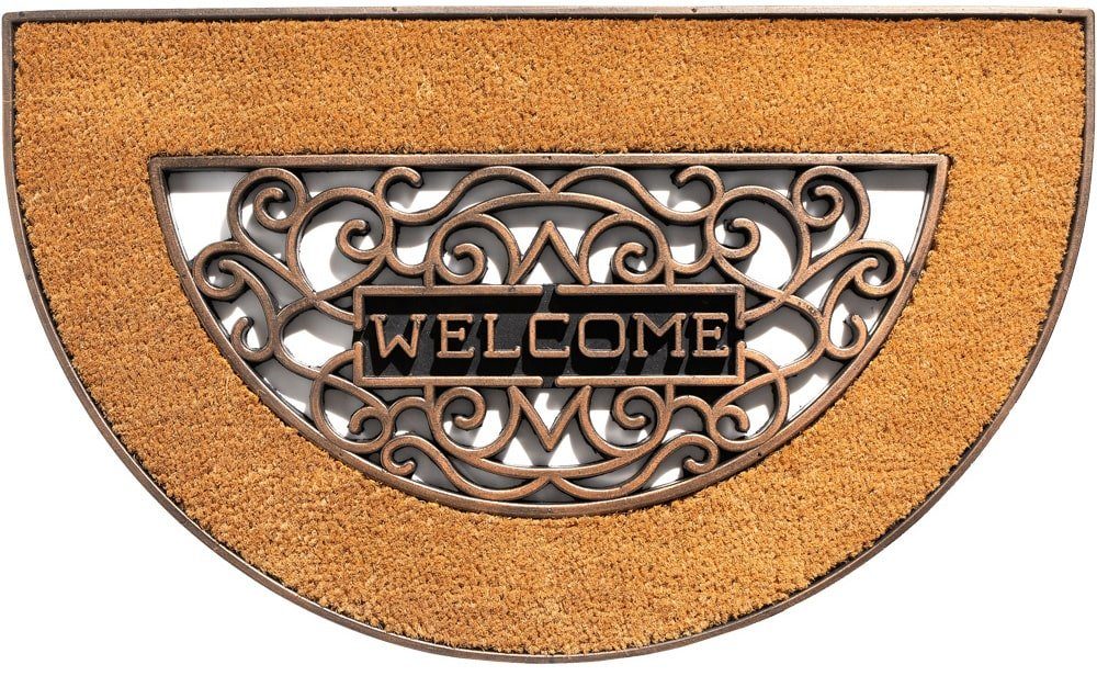 matches21 Kokos Fußmatten mit Gummi In- & Outdoor halbrund Welcome Kupferfarben Schnörkel 1 Stk 45x75 cm - in 2 Farben