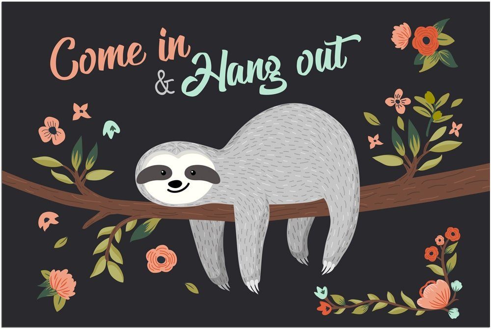 matches21 Fußmatten Fußabstreifer DECOR Motiv Faultier & Spruch Come in & Hang out rutschfest & waschbar - in 2 Größen