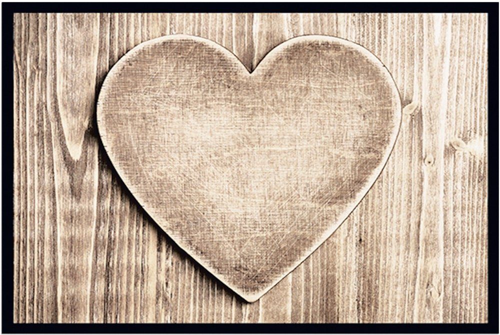 matches21 Fußmatten Fußabstreifer DECOR Motiv Herz Holz Holzoptik Maserung braun rutschfest & waschbar - in 2 Größen