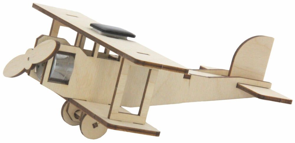 matches21 Doppeldecker Flugzeug Holz Bausatz mit Solar Holzbausatz Solarbausatz Bastelset Steckbausatz Kinder ab 8 Jahre