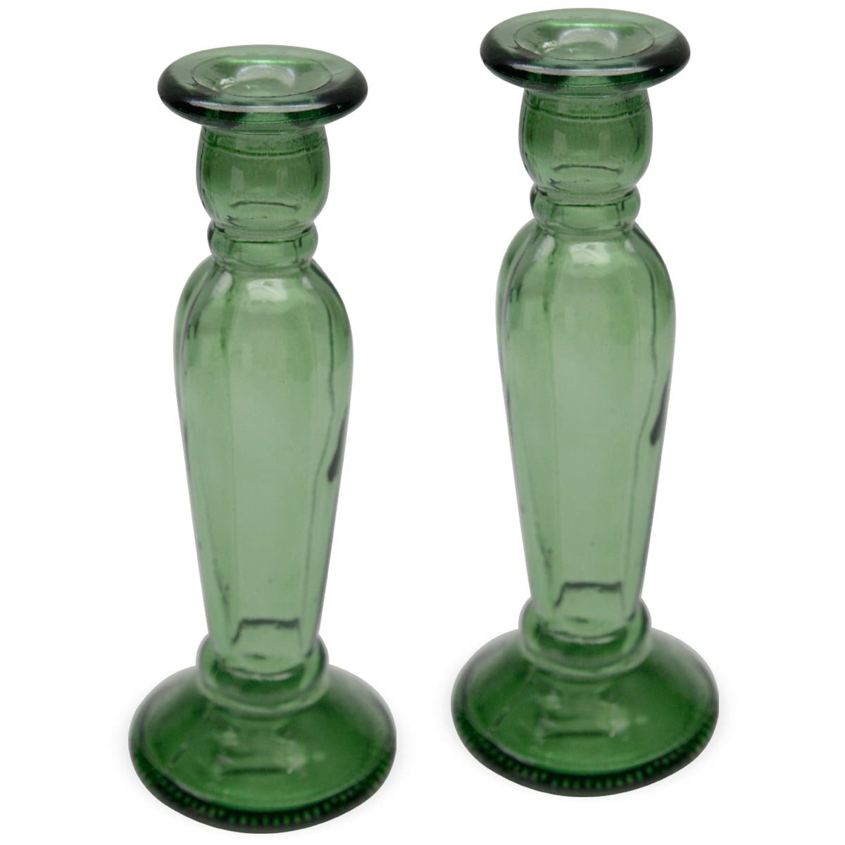Moderne Kerzenständer aus Glas für Stabkerzen - Vintage Stabkerzenhalter Set in 3 Farben Glasdeko zum Hinstellen - Kerzenhalter Tischdeko Set gemischt Wohnzimmer, Schlafzimmer Deko im Landhausstil