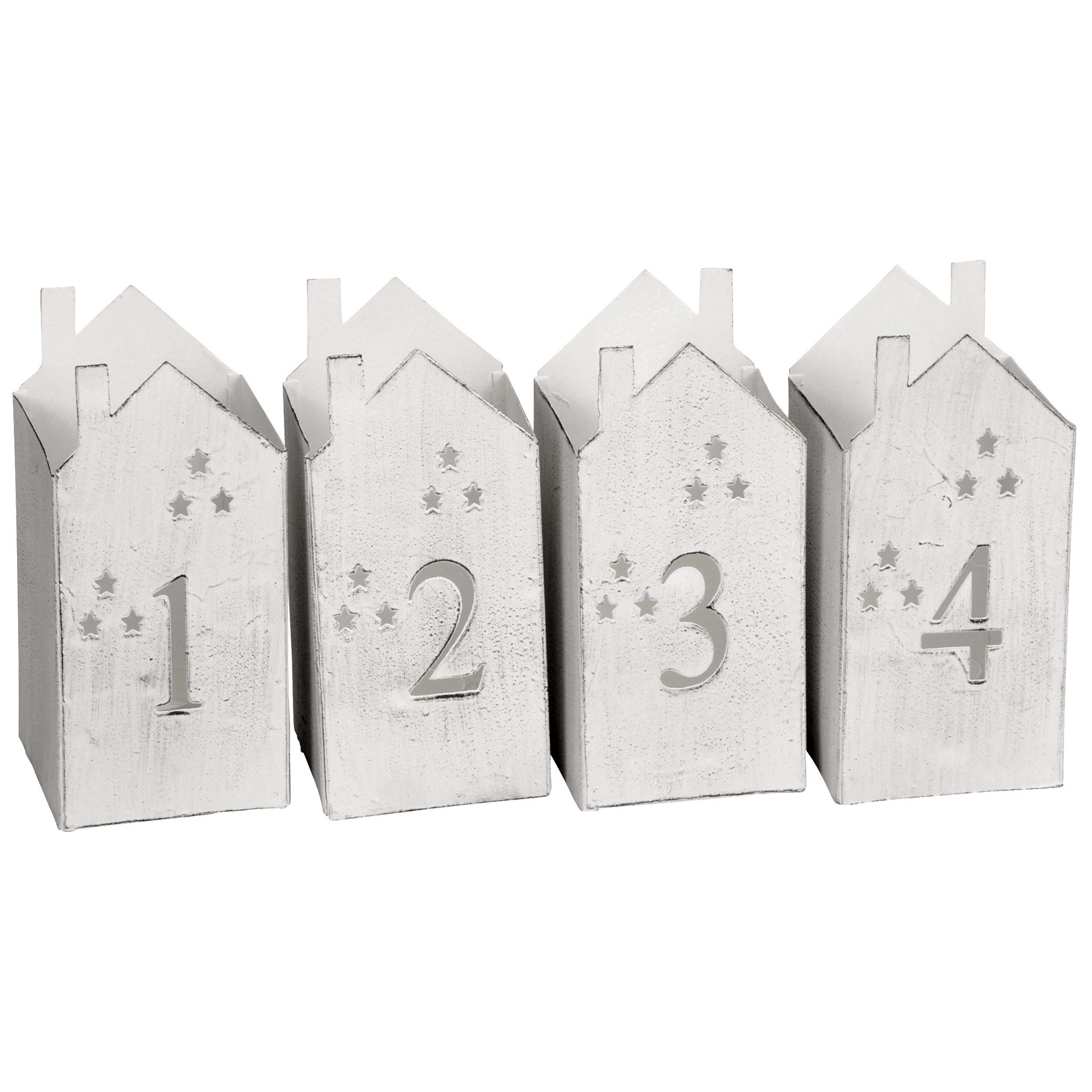ADVENTSSTIMMUNG PUR: Vier liebevoll gestaltete Häuser-Windlichter mit Zahlen 1–4 begleiten Dich stilvoll und stimmungsvoll durch die schönste Zeit des Jahres.