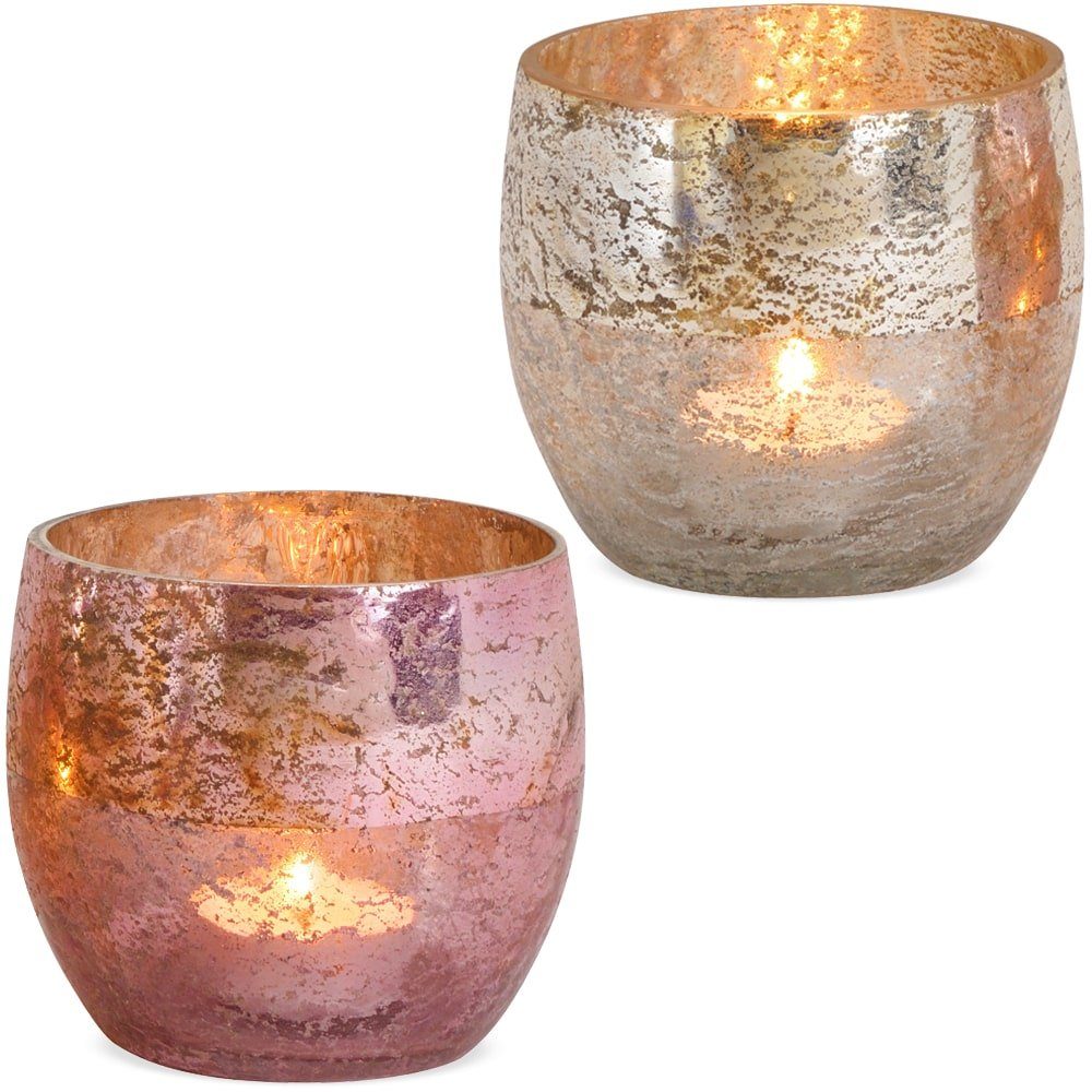 matches21 Windlichter Teelichtgläser Kerzengläser Shabby Bauernsilber Glaswindlicht glänzend creme & rosa 2er 2 Größen