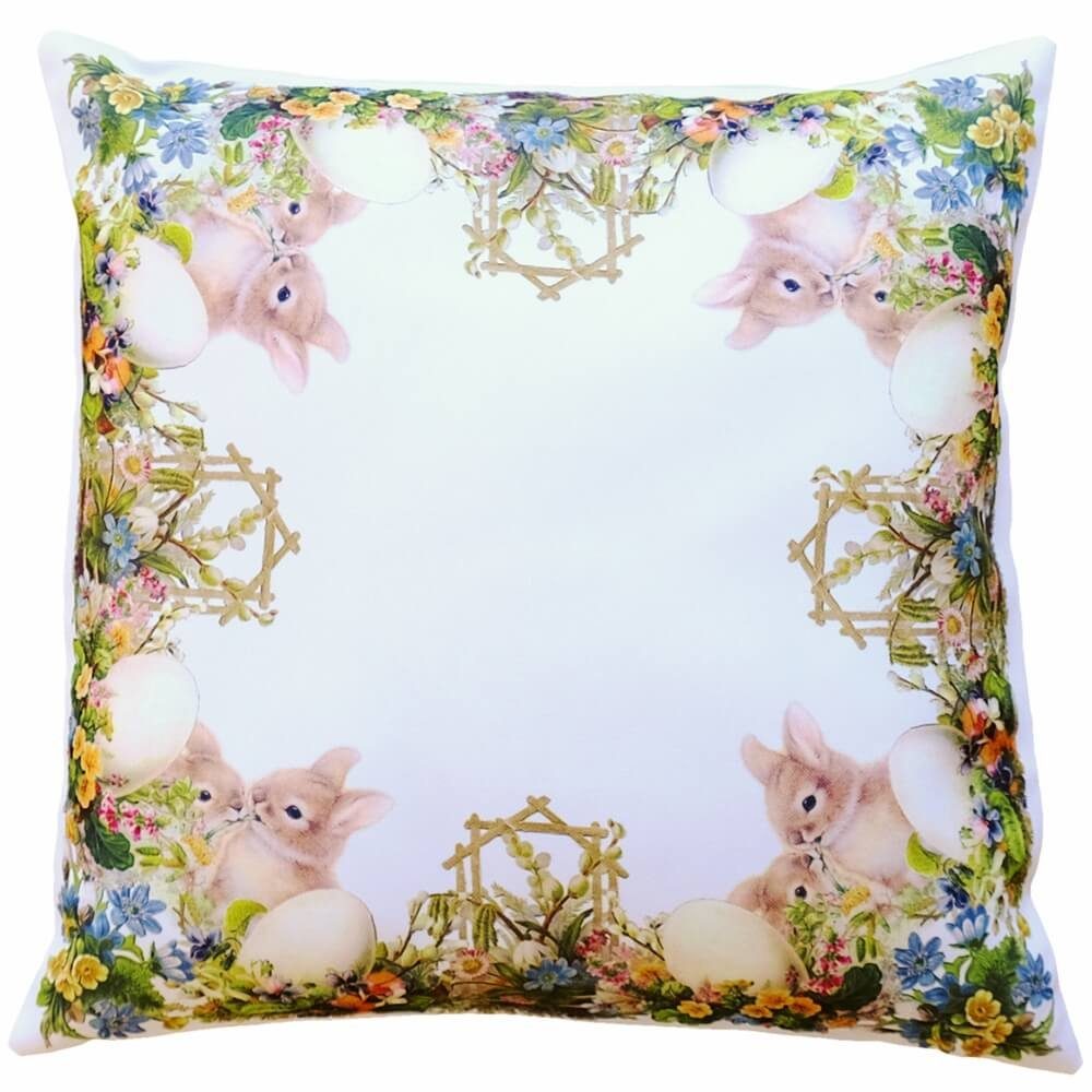 matches21 Kissenhülle Kissenbezug Heimtextilien Ostern nostalgisch bunt Osterhasen bedruckt weiß / bunt 40x40 cm