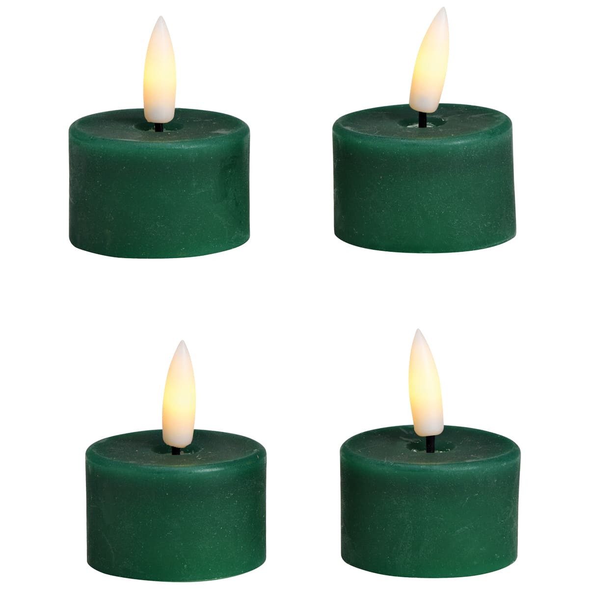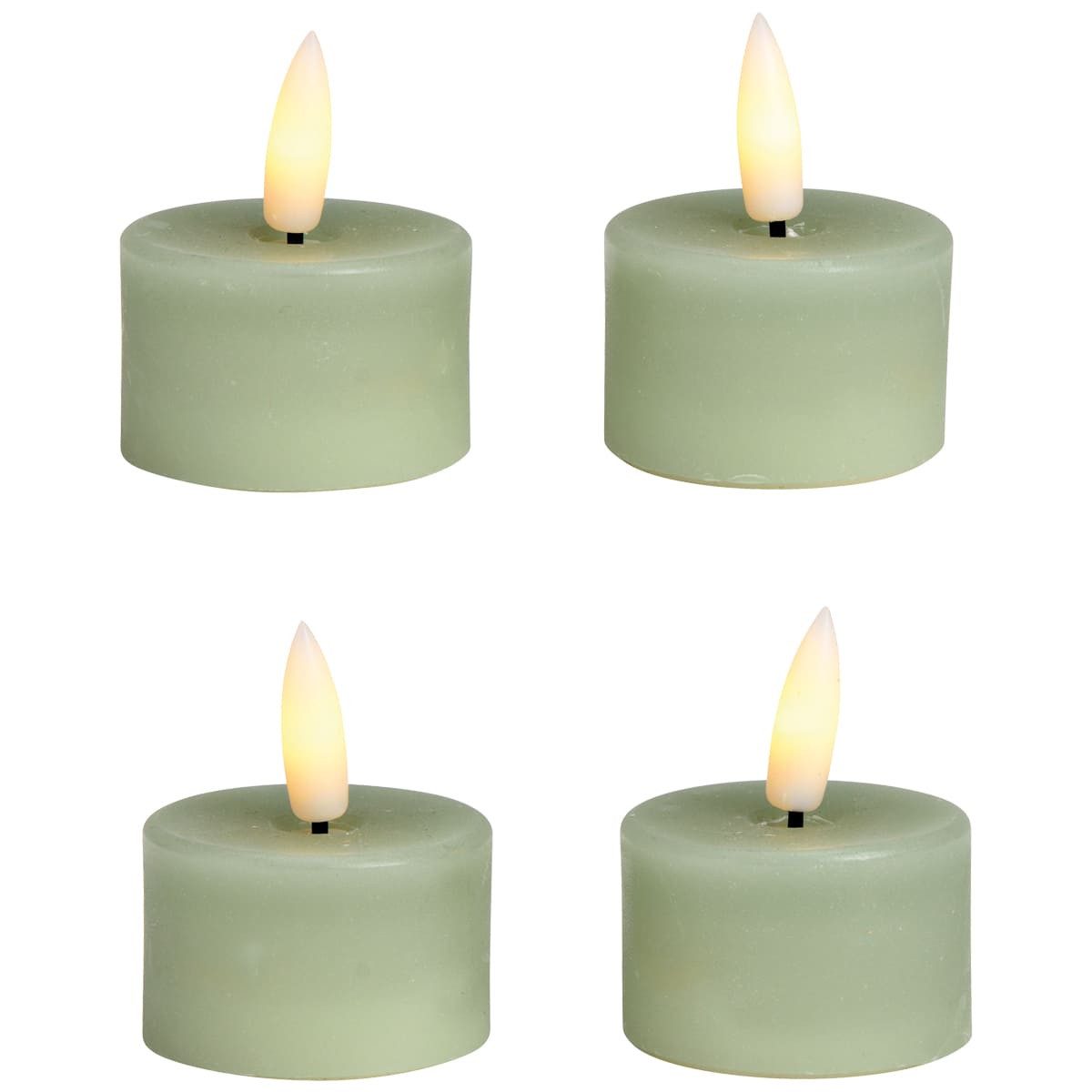 Teelichter (4x4cm): Ideal für dezente Tisch- oder Fensterdekoration, verfügbar in Beige, Weiß, Rot, Grün und Salbei.