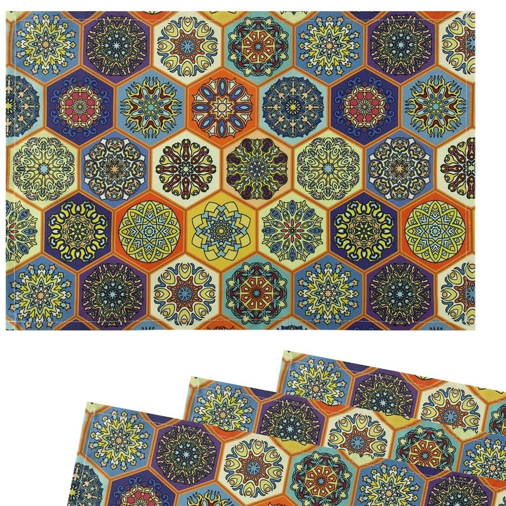matches21 Tischsets Platzsets Platzdeckchen Textil CLOTH Fliesen Mosaik Blumenmuster Blumen Muster bunt 4er Set 45x30 cm