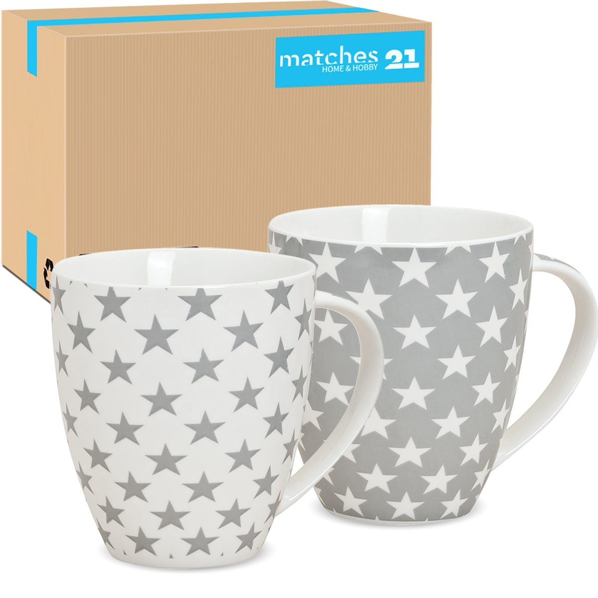 matches21 Große Jumbo Kaffeebecher Tassen Becher Stern grau weiß 24 Stk. Karton Porzellan 12 cm / hoch / 600 ml