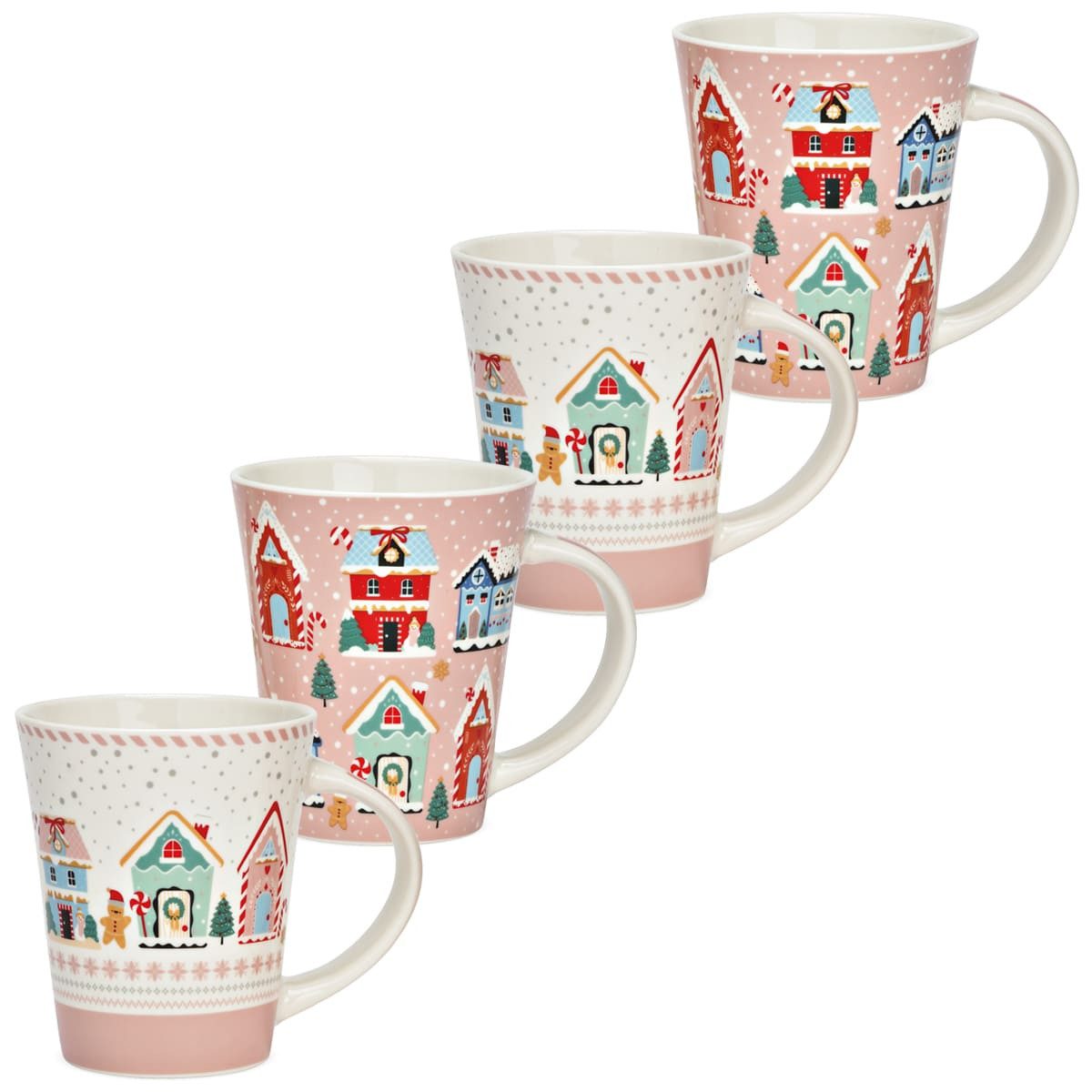 WINTERLICHES WEIHNACHTSDORF: Diese Becher bezaubern mit liebevoll gestalteten Stadthäusern, Lebkuchenfiguren und Schneeflocken - perfekt, für eine festliche Stimmung.