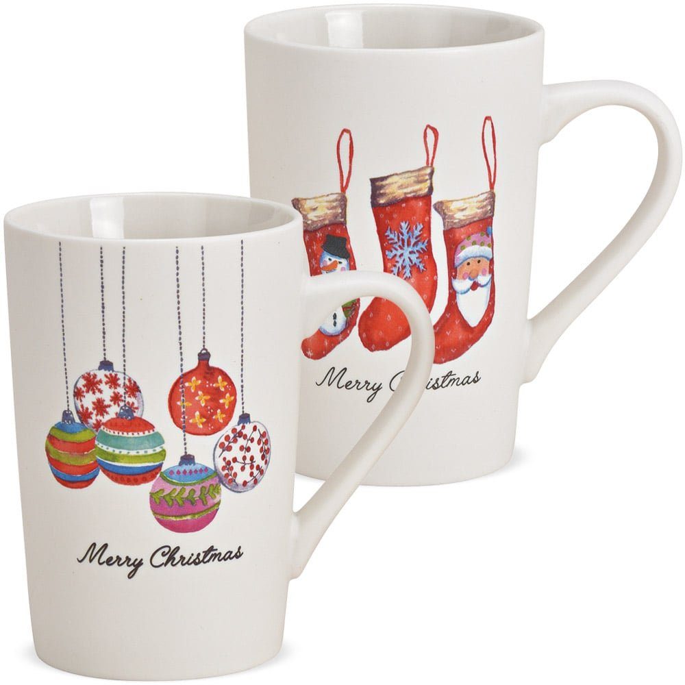 matches21 Tassen Kaffeebecher MERRY CHRISTMAS mit Kugeln & Nikolausstiefeln weiß Porzellan 2er Set sort 12x12 cm 350 ml