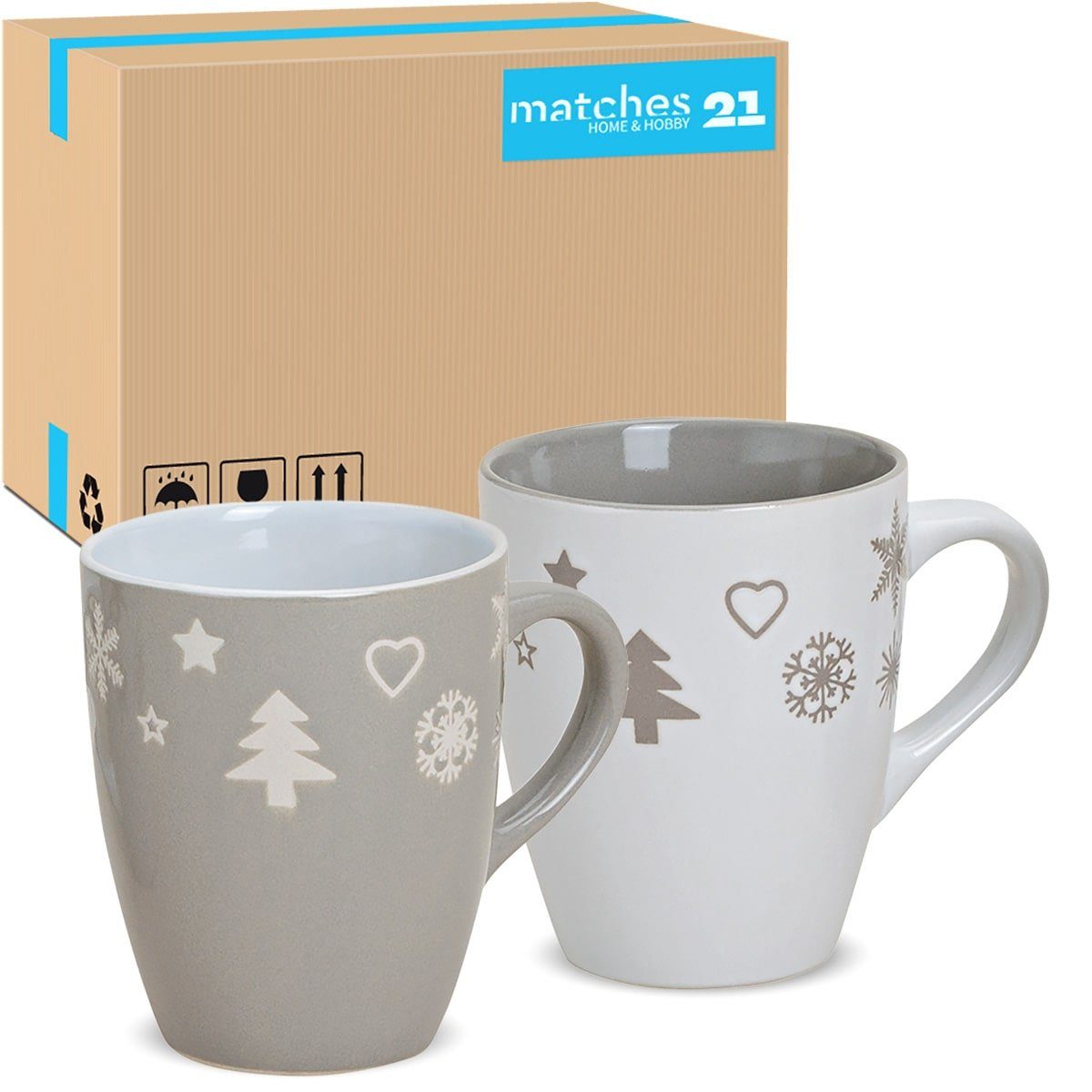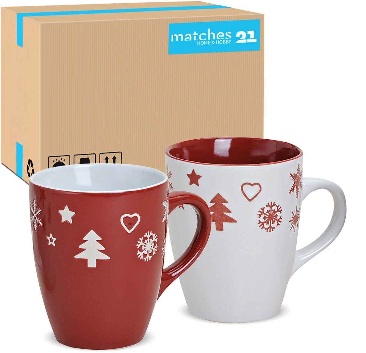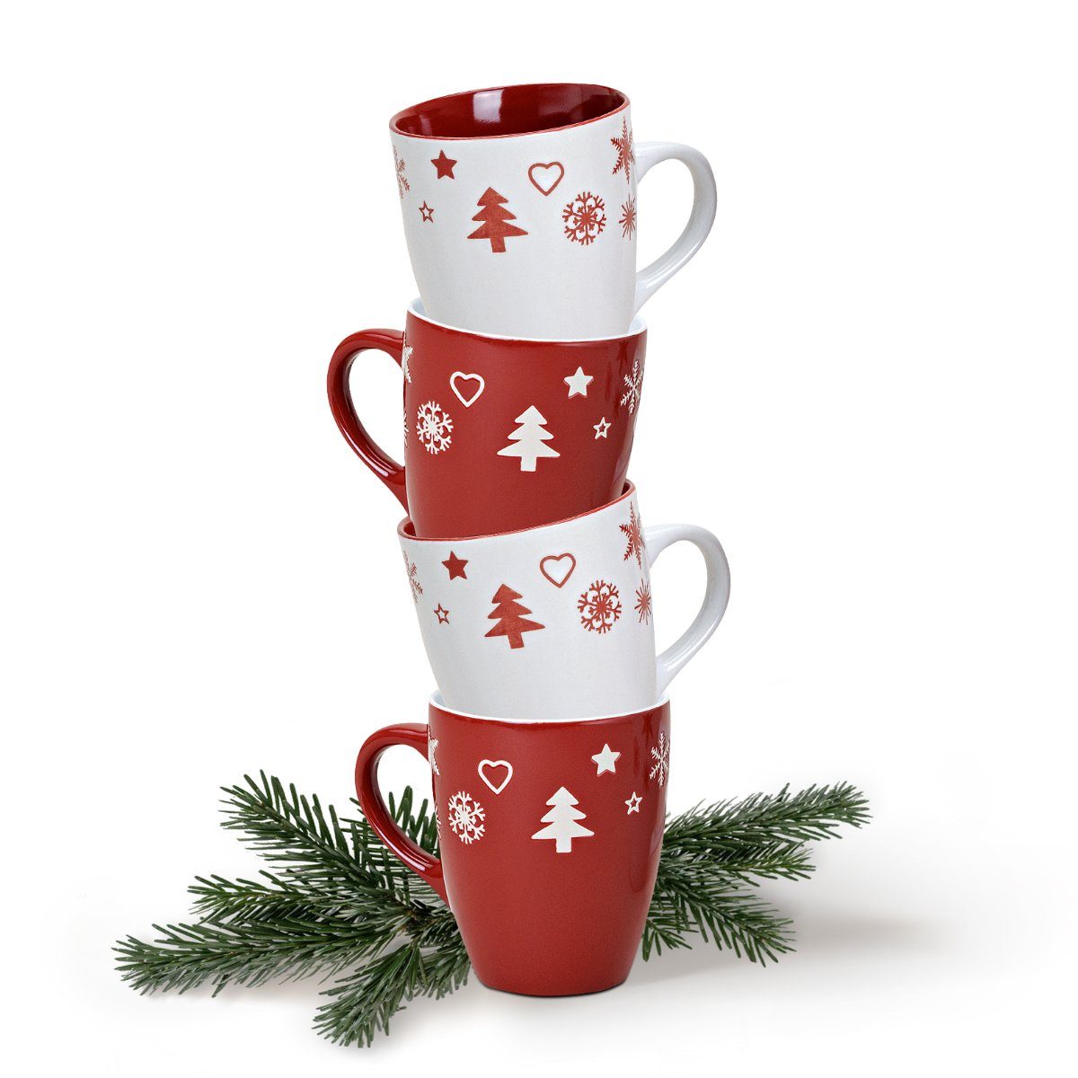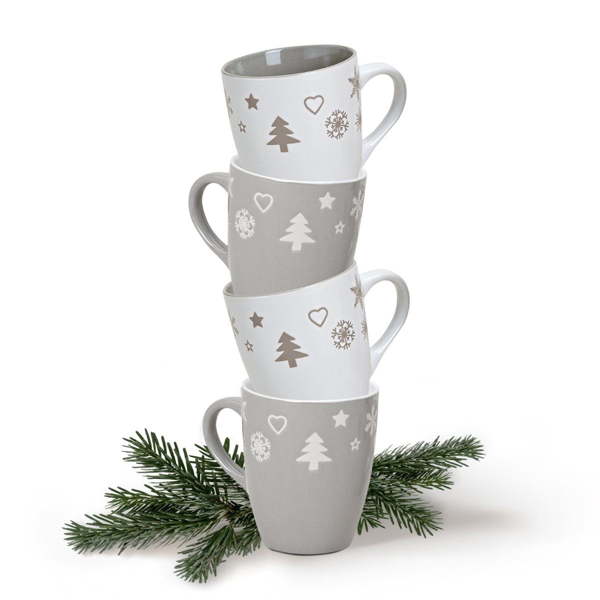 Tassen Xmas in rot / grau und weiß – Keramik Kaffeebecher als Weihnachtstassen in 10 cm – Klassische Kaffeetassen für Weihnachten spülmaschinenfest und mikrowellengeeignet