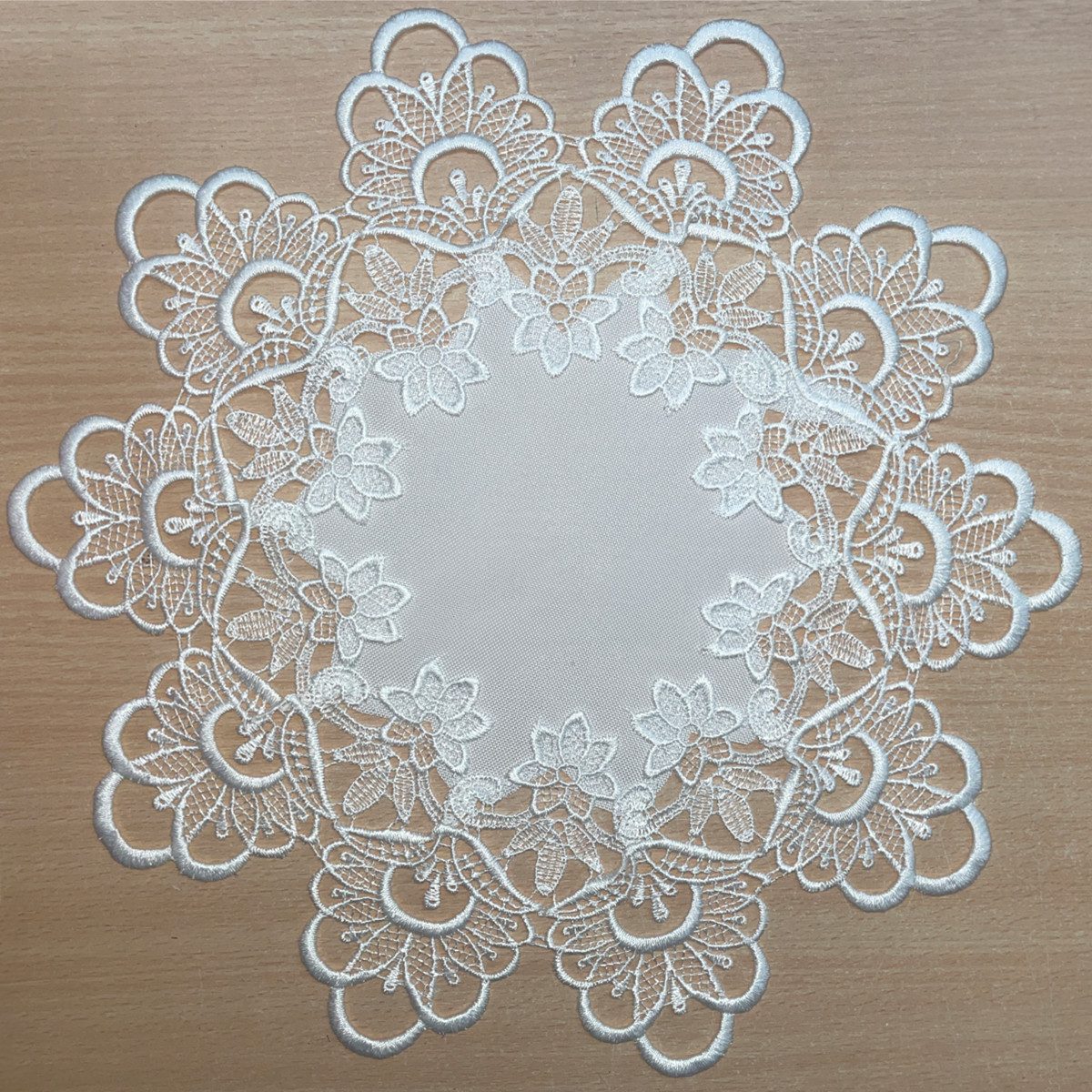 FILIGRANE SPITZENBORDÜRE – Wunderschönes rundes Deckchen mit edler Spitzenverzierung – perfekt für eine stilvolle Tischdekoration im klassischen, romantischen oder Vintage-Stil.