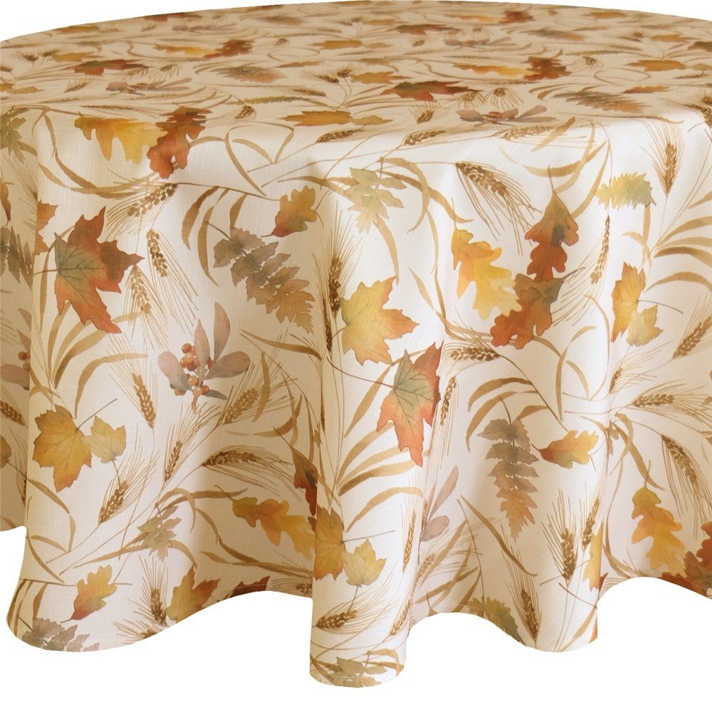 HERBSTLICHES DESIGN – Runde Tischdecke mit zauberhaftem Blätterdruck in warmen Herbstfarben – ideal für eine gemütliche Atmosphäre in Esszimmer, Küche oder auf der Terrasse.