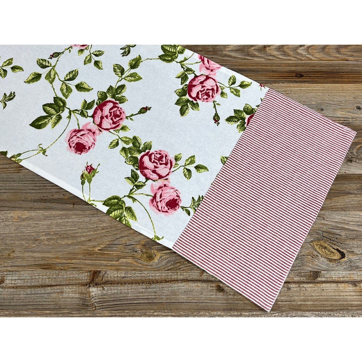 ROMANTISCH: Wunderschöner Tischläufer im charmanten Landhausstil mit liebevollem Rosenmotiv in Rosa und Grün, perfekt als elegante Esstischdekoration oder für festlichen Anlässen