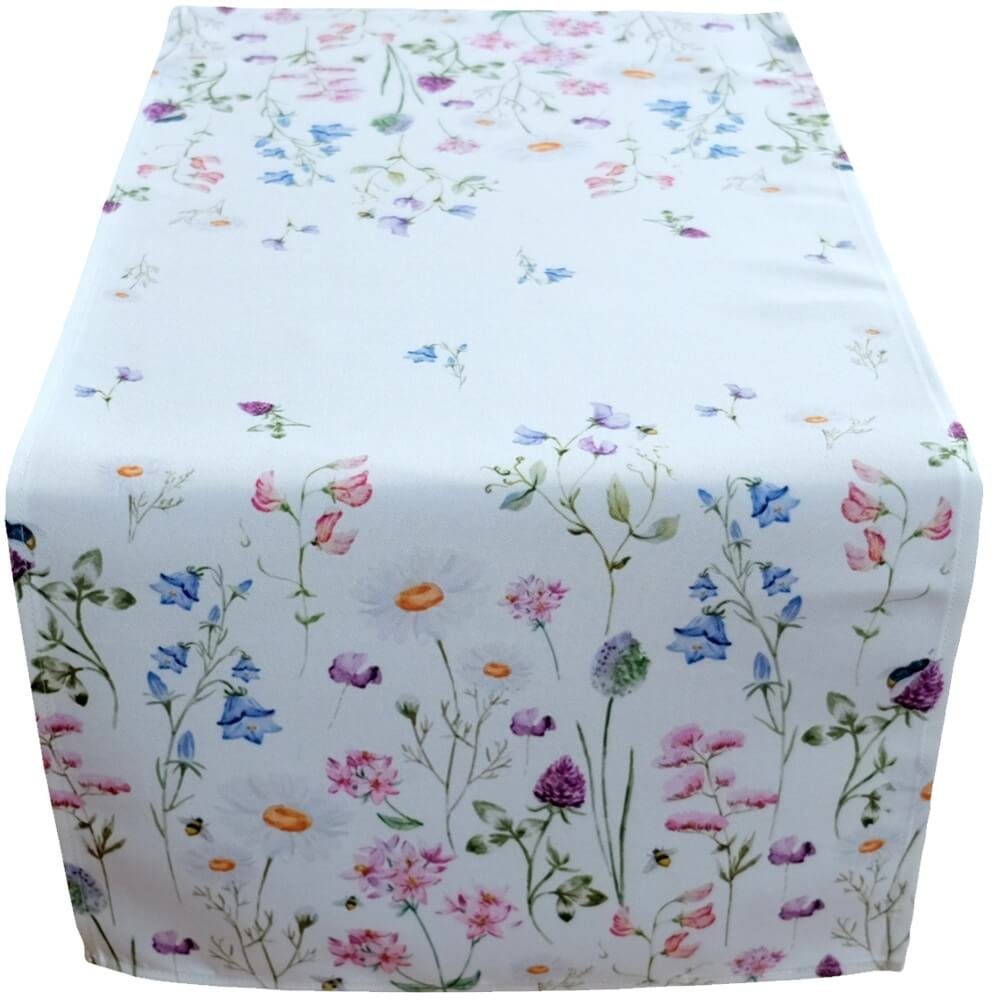FRÜHLINGSDEKO PUR – Tischläufer NORA 40 x 90 cm mit liebevoll bedrucktem Wiesenblumen-Motiv in Aquarelloptik – perfekt für eine natürliche Frühlingsdeko im Landhausstil.