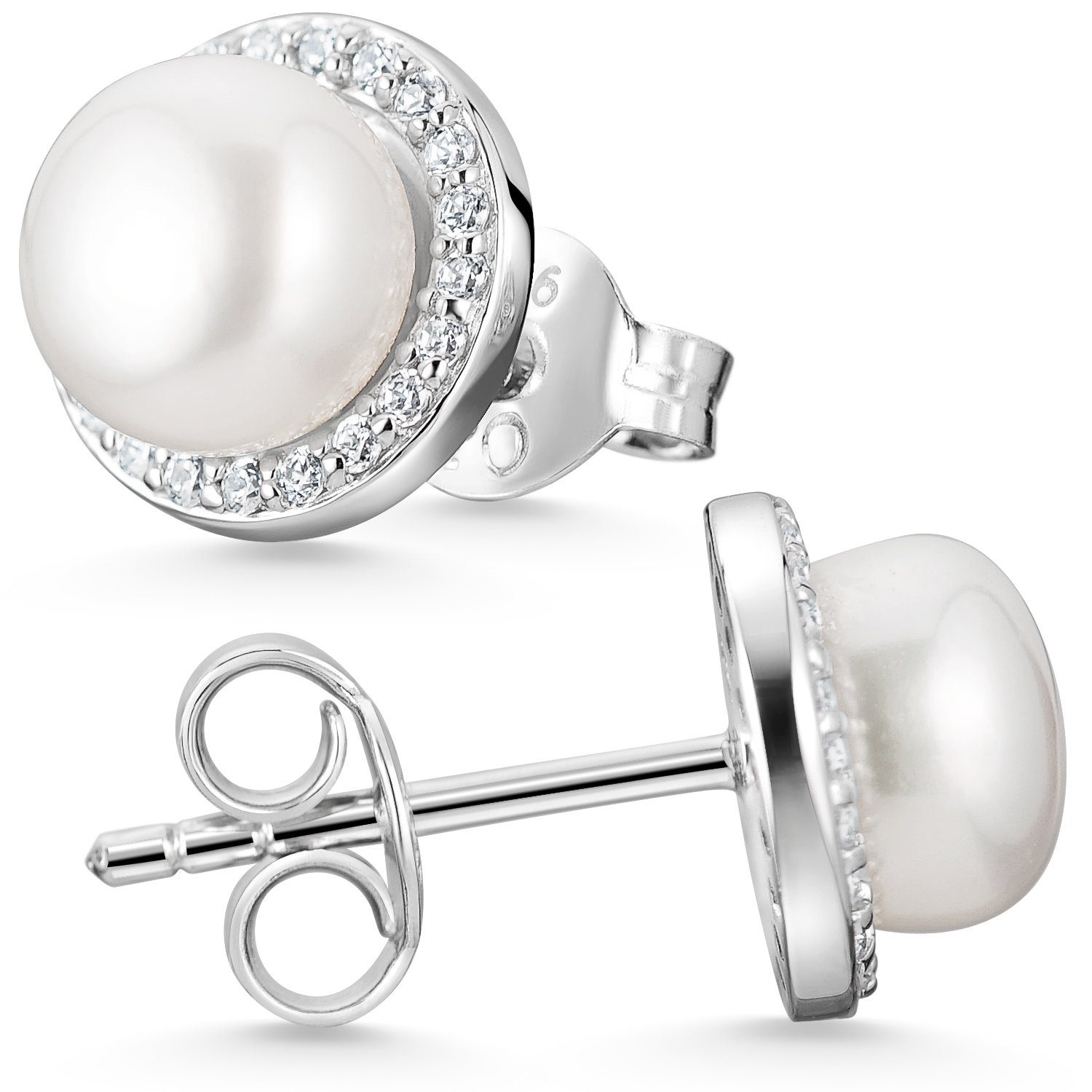 - Besatz: je 1 naturweiße Süßwasserzuchtperle Ø8mm + je 21 weiße Zirkonia im Princessschliff