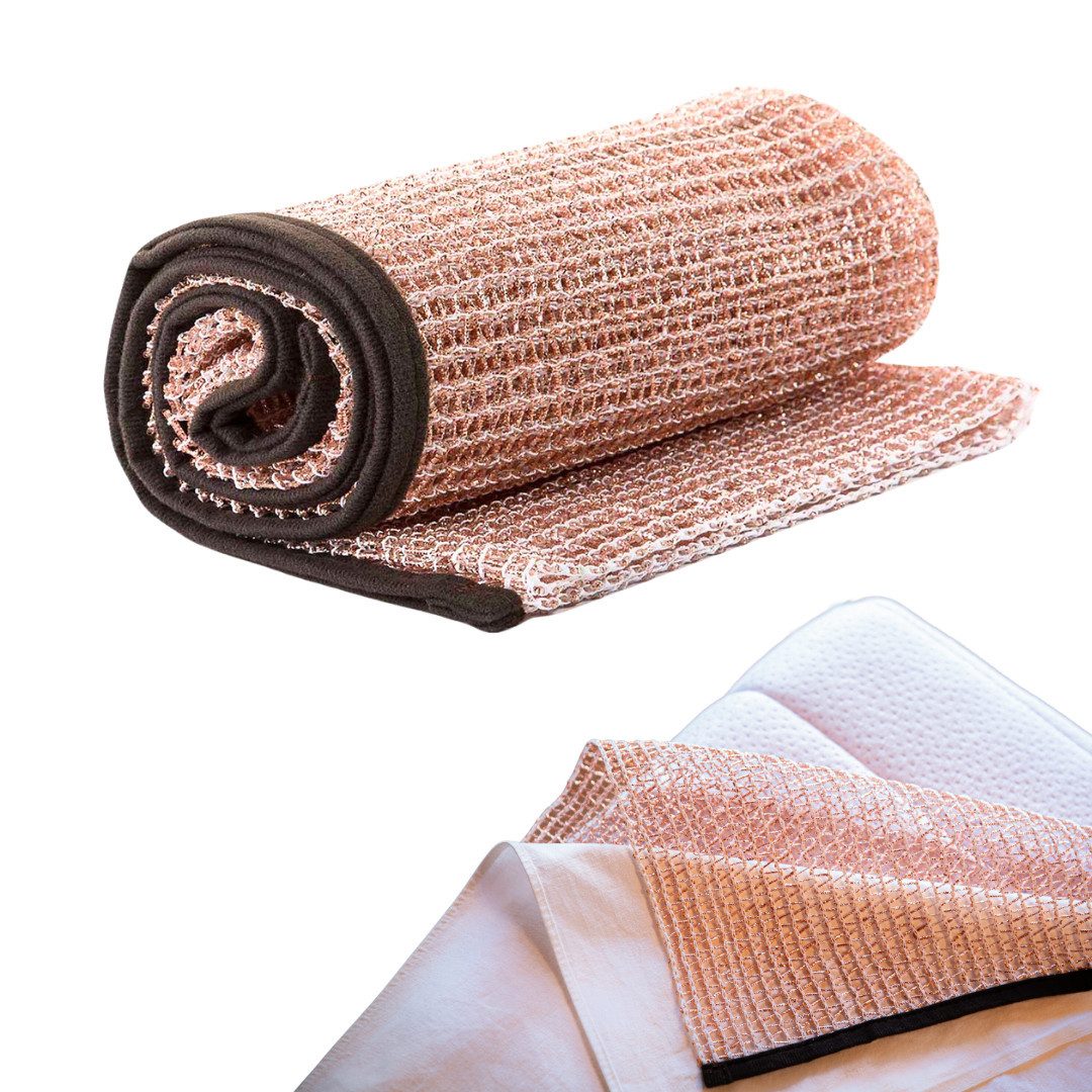 Tiefer und entspannter Schlaf – durch elektromagnetische Abschirmung Die Errungenschaften der modernen Zeit bringen viele Vorteile im Alltag mit sich. Je digitaler unsere Welt wird, desto komplexer wird sie aber im Gegenzug. Zusätzlich haben die vielen digitalen Alltagshelfer auch Auswirkungen auf unsere Gesundheit. Elektrosmog ist hier das Stichwort, unter dem Experten die Belastung verstehen, die durch elektrische, magnetische und elektromagnetische Felder zustandekommt. Elektrosmog kann dabei ganz unterschiedliche Ursachen haben; im Vordergrund steht aber vor allem der Elektrosmog per Handy. Besonders nachts kann Elektrosmog zu massiven Beeinträchtigungen führen. Betroffene berichten regelmäßig über Schlafstörungen beim Ein- und Durchschlafen, aber auch über unruhigen Schlaf, Reizzuständen und Symptomen wie Kopfschmerzen und Gelenkschmerzen. Natürlich lässt sich ein Strahlenschutz beim Handy ganz einfach erreichen, indem das Handy einfach aus dem Schlafzimmer verbannt wird. Doch was ist in den Fällen, in denen das nicht möglich ist? Gesundheit, Wohlbefinden und guter Schlaf Der Zusammenhang zwischen Krankheiten wie Rheuma, Kopfschmerzen, Schlaflosigkeit, Ischias, Depressionen, Asthma, chronischen Schmerzen, Rückenschmerzen, vegetativen Beschwerden, Gelenkschmerzen und vielen anderen Beschwerden und der massiven Einwirkung von Erdstrahlen, Wasseradern und Elektrofeldern wird von Wissenschaftlern und Medizinern nicht ausgeschlossen. Aus jahrhundertelanger Erfahrung weiß man, dass Kupfer auf völlig natürliche Weise den genannten Beschwerden vorbeugen und vor diesen schützen kann. Das betrifft gerade auch den Schutz rund um das Thema Handystrahlen, Handy Strahlung, Handy & Strahlenschutz: Die Zunahme der Nutzung von mobilen Endgeräten wirkt sich oft auf unser Wohlbefinden aus. Nachts liegen die Smartphones dann regelmäßig auf dem Nachttisch. Gleiches gilt für die Belastung durch die WLAN Strahlung – auch hier befindet sich der WLAN-Anschluss häufig in der Nähe des Bettes. Anwendung der Kupfermatte als Betteinlage Legen Sie die Kupfermatte zwischen Ihre Matratze und das Unterbett. Wenn Sie eine Heizdecke verwenden, sollten Sie die Kupfermatte unter die Matratze legen. Wichtig zu wissen: Ihr Bettzeug wird nicht beschädigt! Wie wird die Kupfermatte entladen? Um die Kupfermatte wieder zu entladen, sollten Sie diese alle 10 bis 20 Tage sorgfältig in kaltes Wasser tauchen und trocknen lassen. Danach ist die Kupfermatte wieder voll einsatzfähig und funktioniert wirkungsvoll als Elektrosmog Schutz durch Handy & Co. Wichtig zu wissen: Die Kupfermatte muss nicht gereinigt werden – sie wirkt durch das verwendete Reinkupfer antibakteriell und ist daher von Natur aus hygienisch sauber.