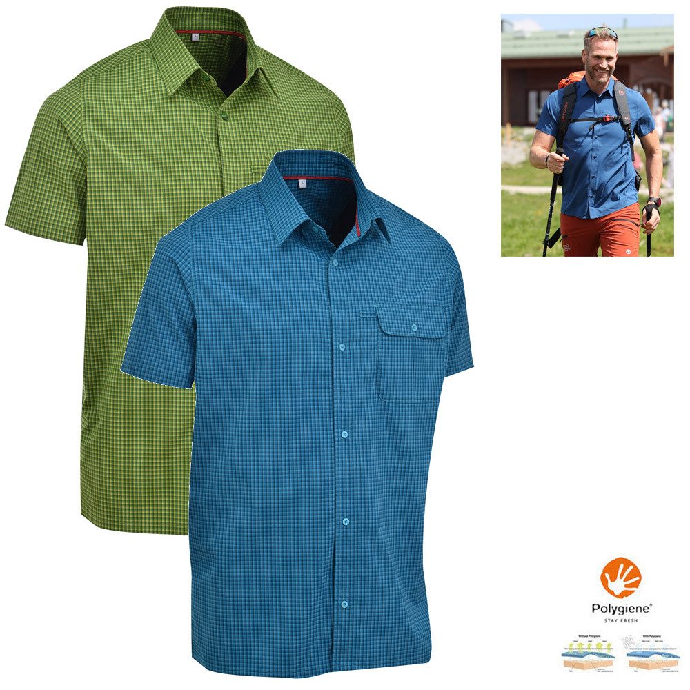 Ein gemütlicher Wanderer braucht ein klassisches kariertes Kurzarmhemd aus Funktionsmaterial mit praktischen Taschen.