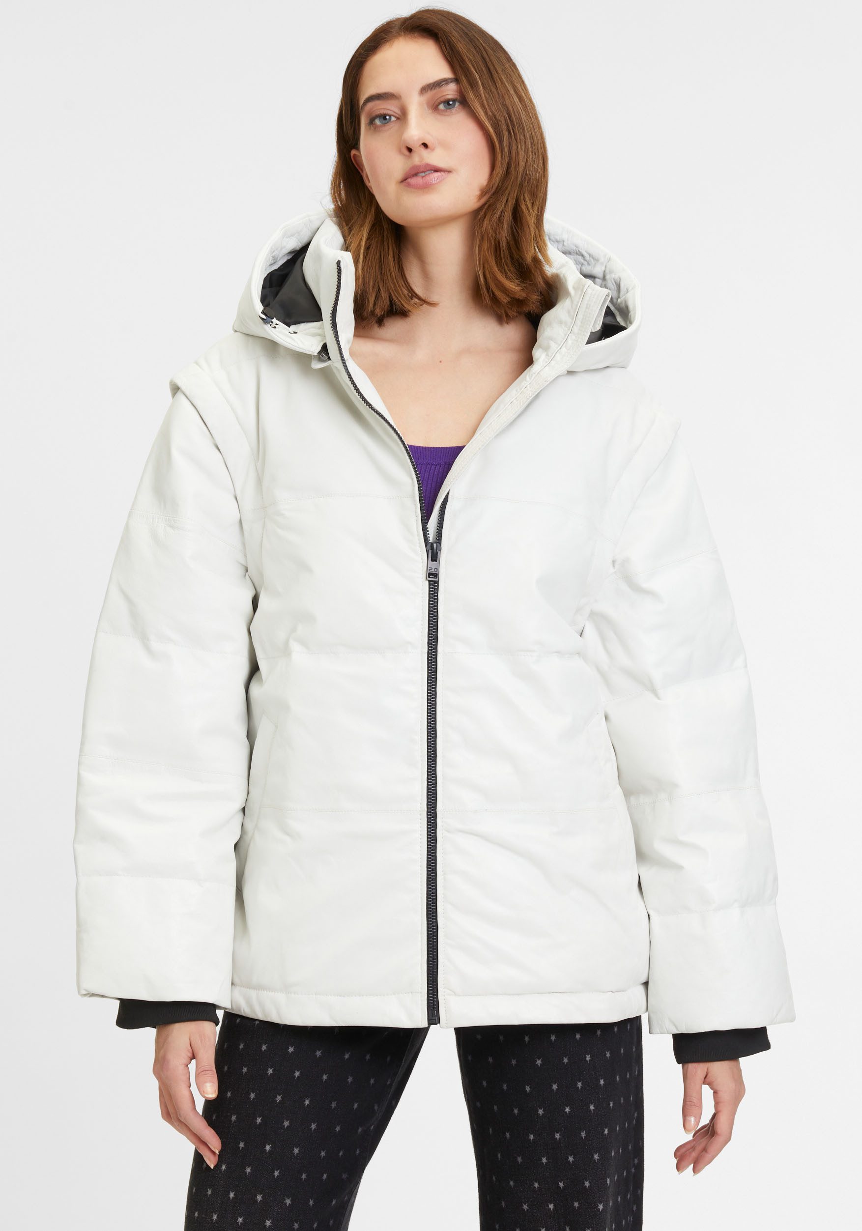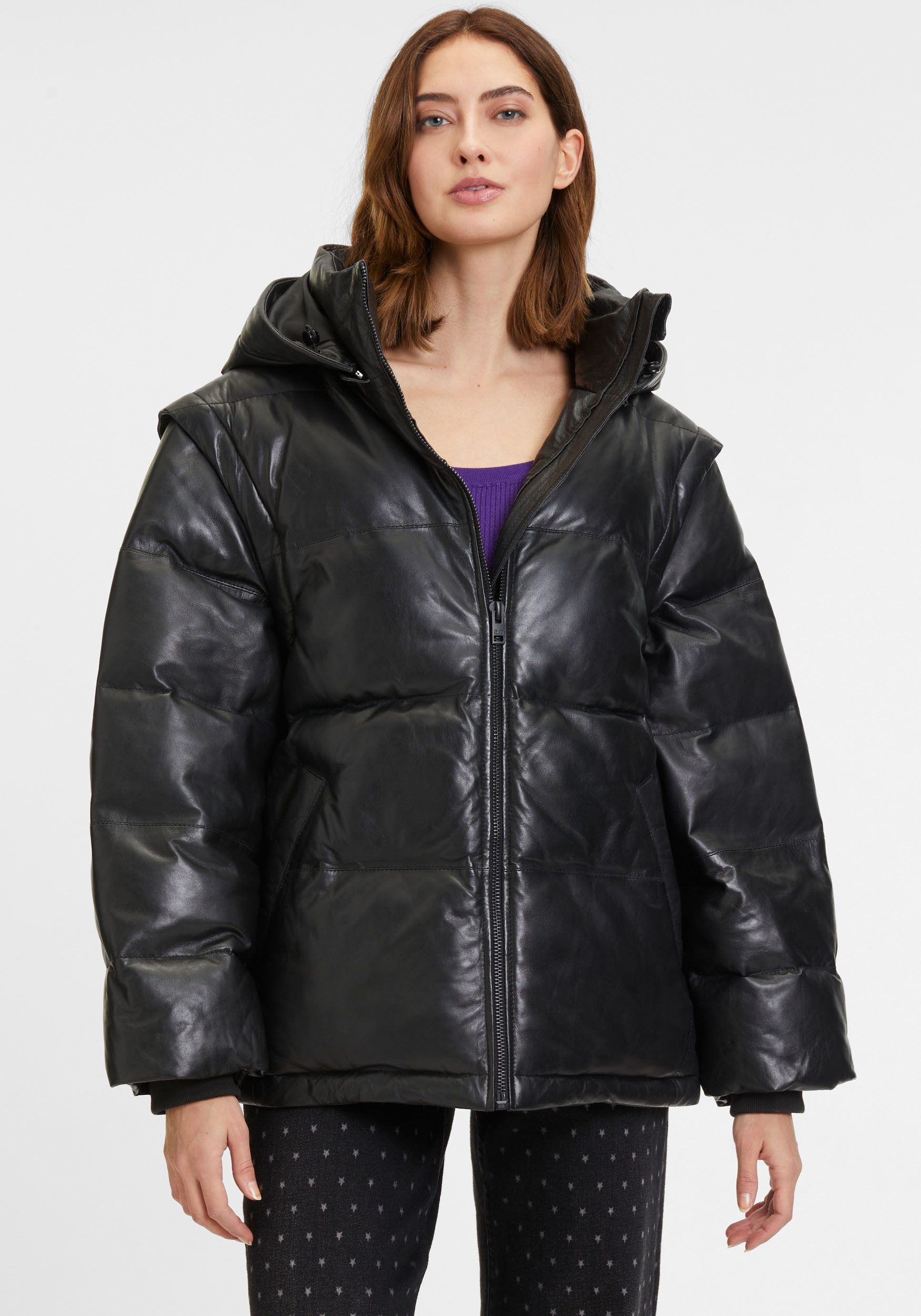 Materialzusammensetzung | Obermaterial: 100% Schafsleder. Futter: 100% Polyester. Kapuzenfutter: 100% Polyester. Ärmelfutter: 100% Polyester |