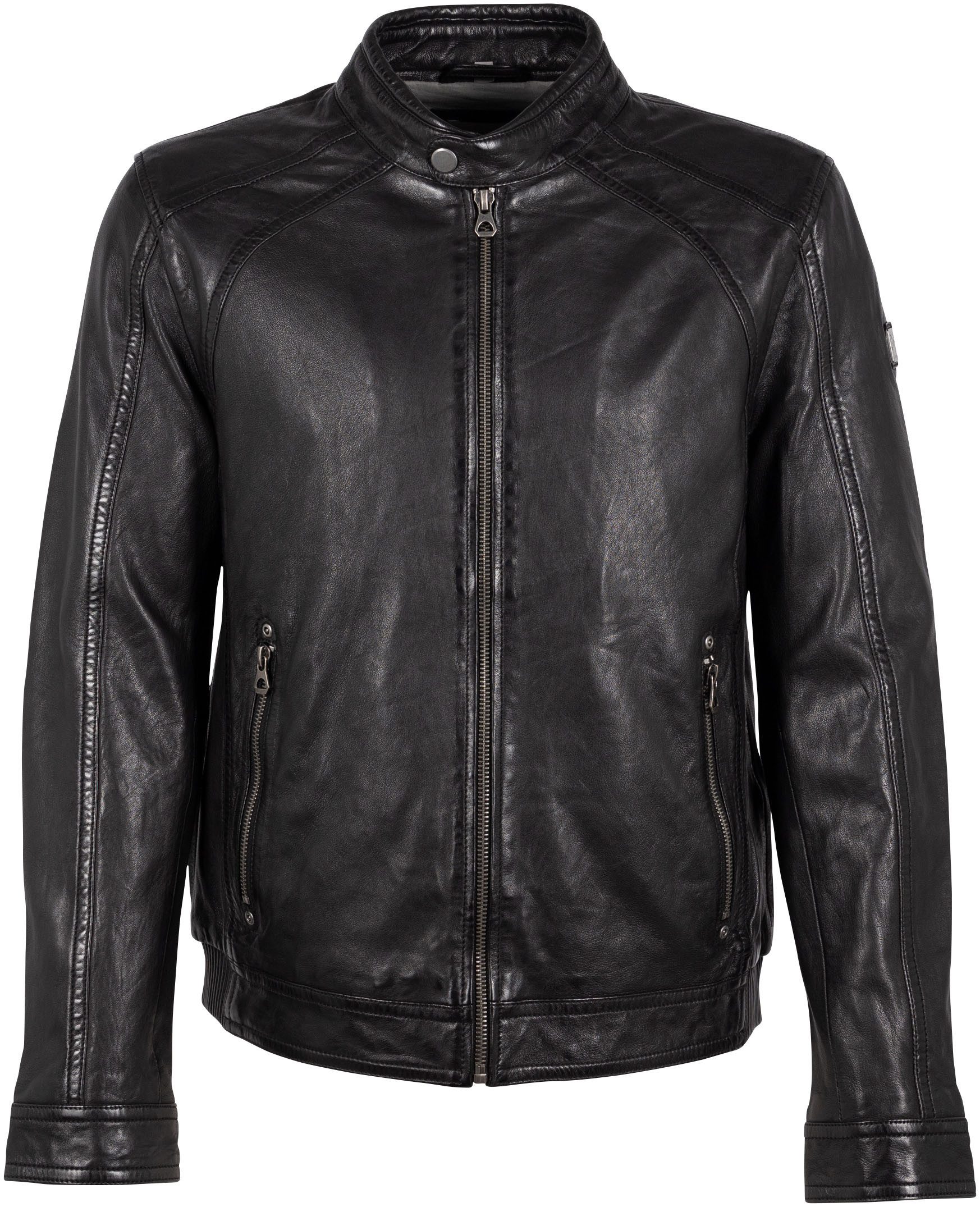 Die Lederjacke »GMBreston« von Mauritius wird zu deinem Lieblingsstück. Die langen Ärmel enden, genauso wie der Saumabschluss, in einem angesetzten Bündchen und können an warmen Tagen auch hoch gezogen getragen werden. Die Lederjacke ist kurz und gerade geschnitten, sodass du dich rundum wohl und nicht eingeengt fühlst. Mit den Reißverschlusstaschen können wichtige Dinge wie Geldbeutel und Handy nicht mehr herausfallen.