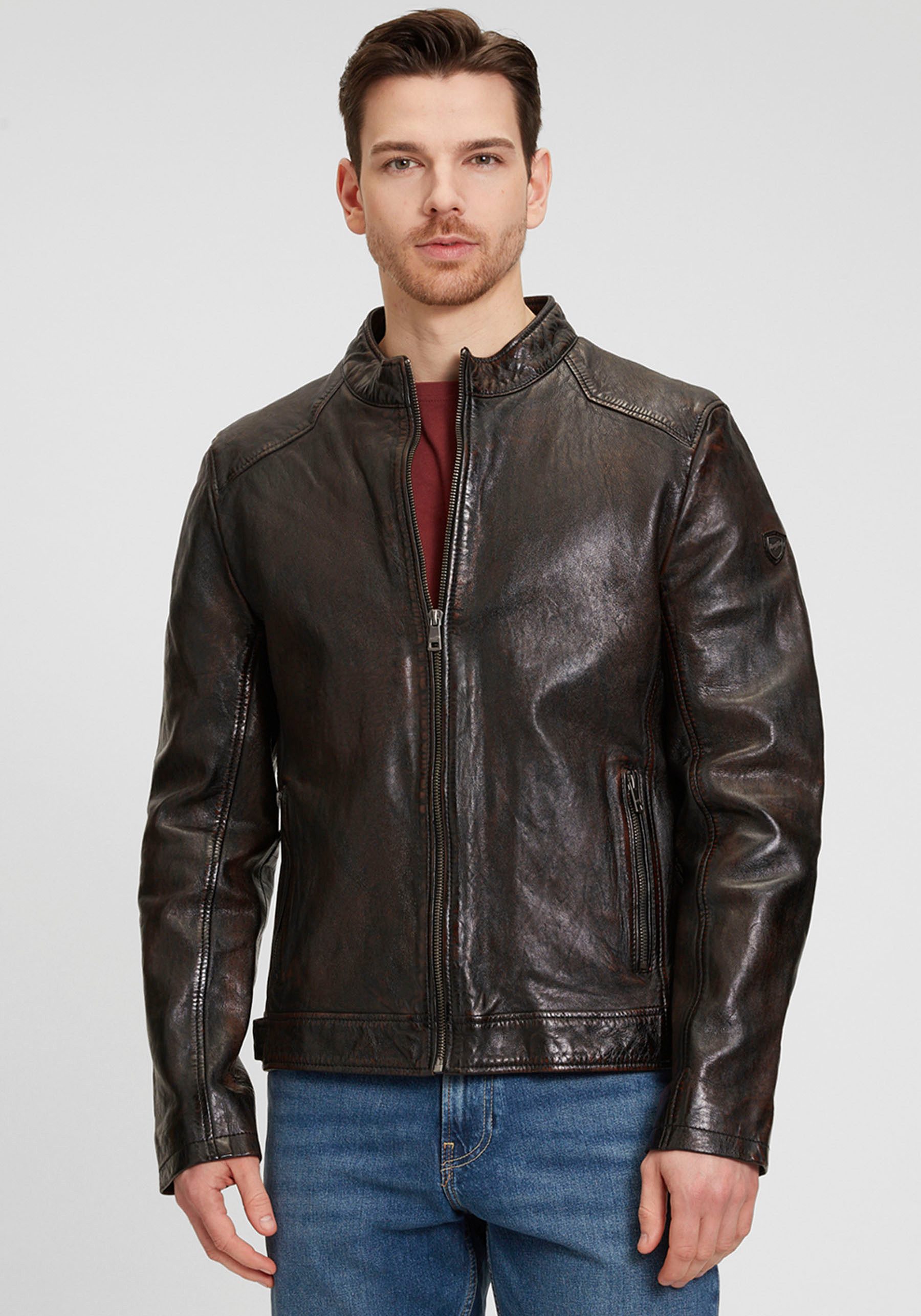 Für den Stadtbummel oder das gemütliche Zusammensitzen im Garten — die Herren-Lederjacke »MMAdelmo« von Mauritius ist eine gute Idee für deine Outfits!