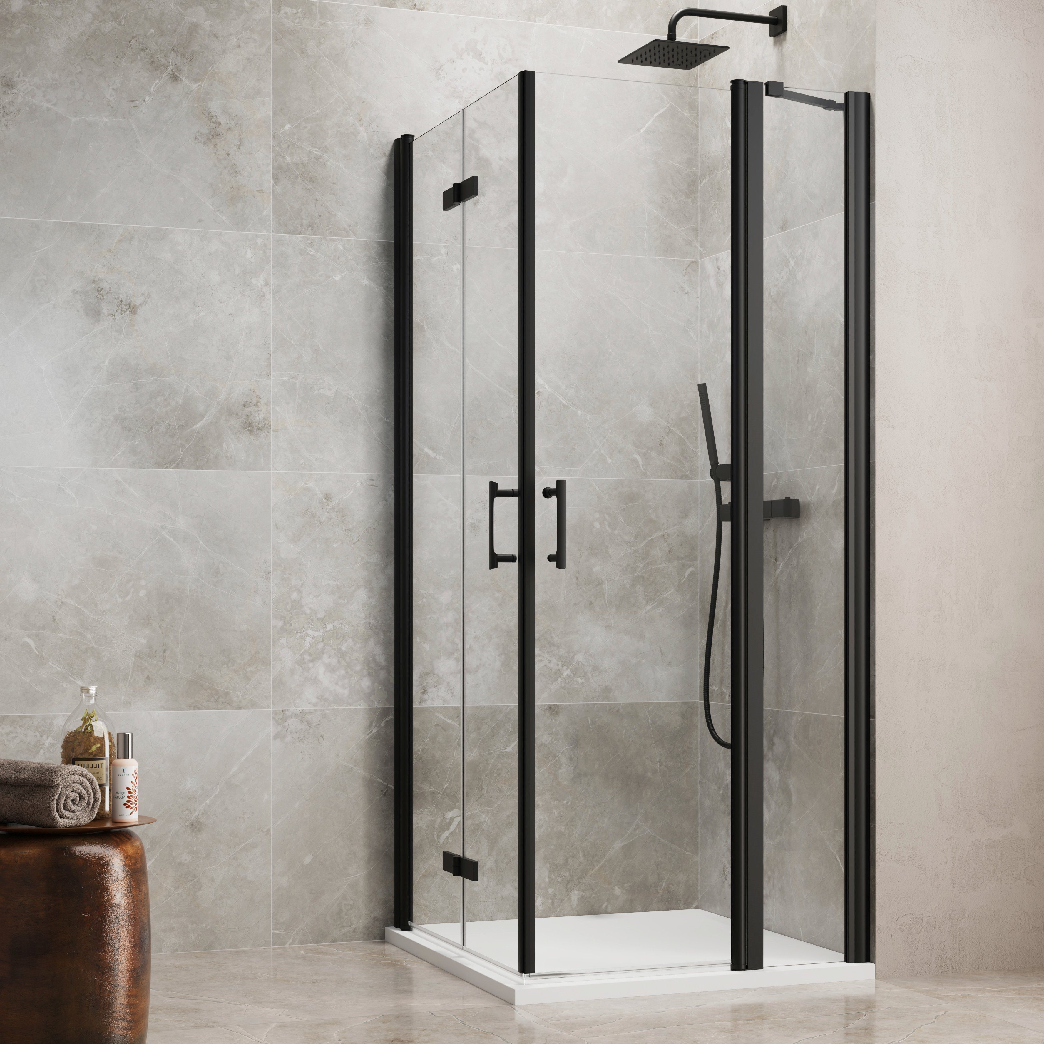 Duschkabine aus 6 mm Einscheibensicherheitsglas inklusive wasserabweiser Beschichtung. Drehsäulen/ Scharniere verfügen über einen integrierten Hebe-Senk-Mechanismus beim Öffnen und Спрятать. Beschläge und Profile sind in dieser Serie in modernem Mattschwarz oder Chromotik verfügbar. Dank großzügigem Verstellbereich des Wandanschlussprofils auch an nicht lotrechten Wänden montierbar