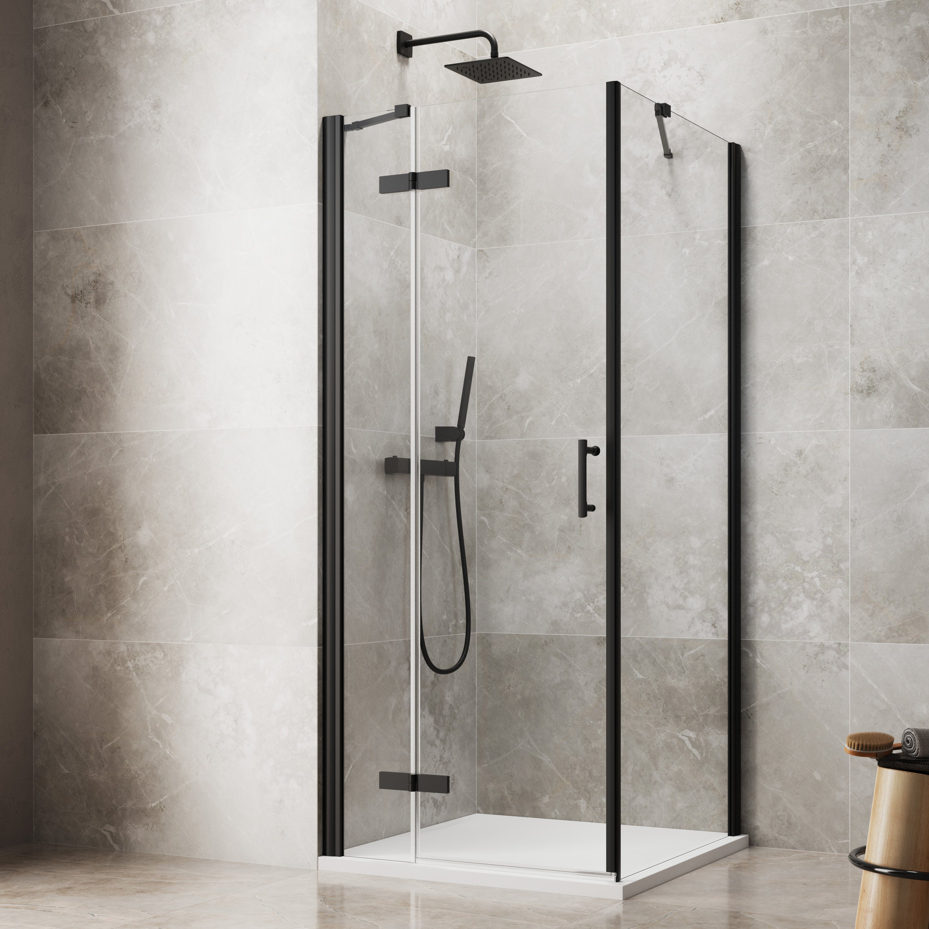 Duschkabine aus 6 mm Einscheibensicherheitsglas inklusive wasserabweiser Beschichtung. Drehsäulen/ Scharniere verfügen über einen integrierten Hebe-Senk-Mechanismus beim Öffnen und Спрятать. Beschläge und Profile sind in dieser Serie in modernem Mattschwarz oder Chromotik verfügbar. Dank großzügigem Verstellbereich des Wandanschlussprofils auch an nicht lotrechten Wänden montierbar
