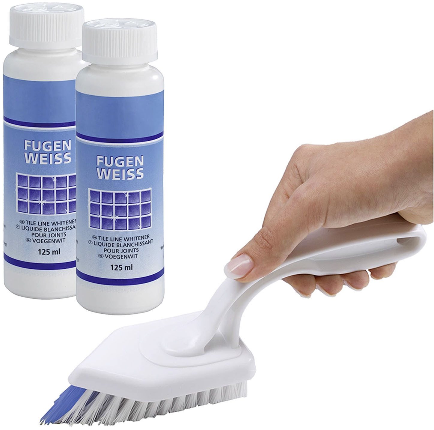 Mit dem 3-teiligen Fugenreinigungs-Set von Maximex werden vergilbte und in die Jahre gekommene Fugen im Handumdrehen wieder sauber und weiß! Das Set besteht aus zwei Flaschen Fugenweiß mit jeweils 125 ml und einer praktischen Fugenbürste.