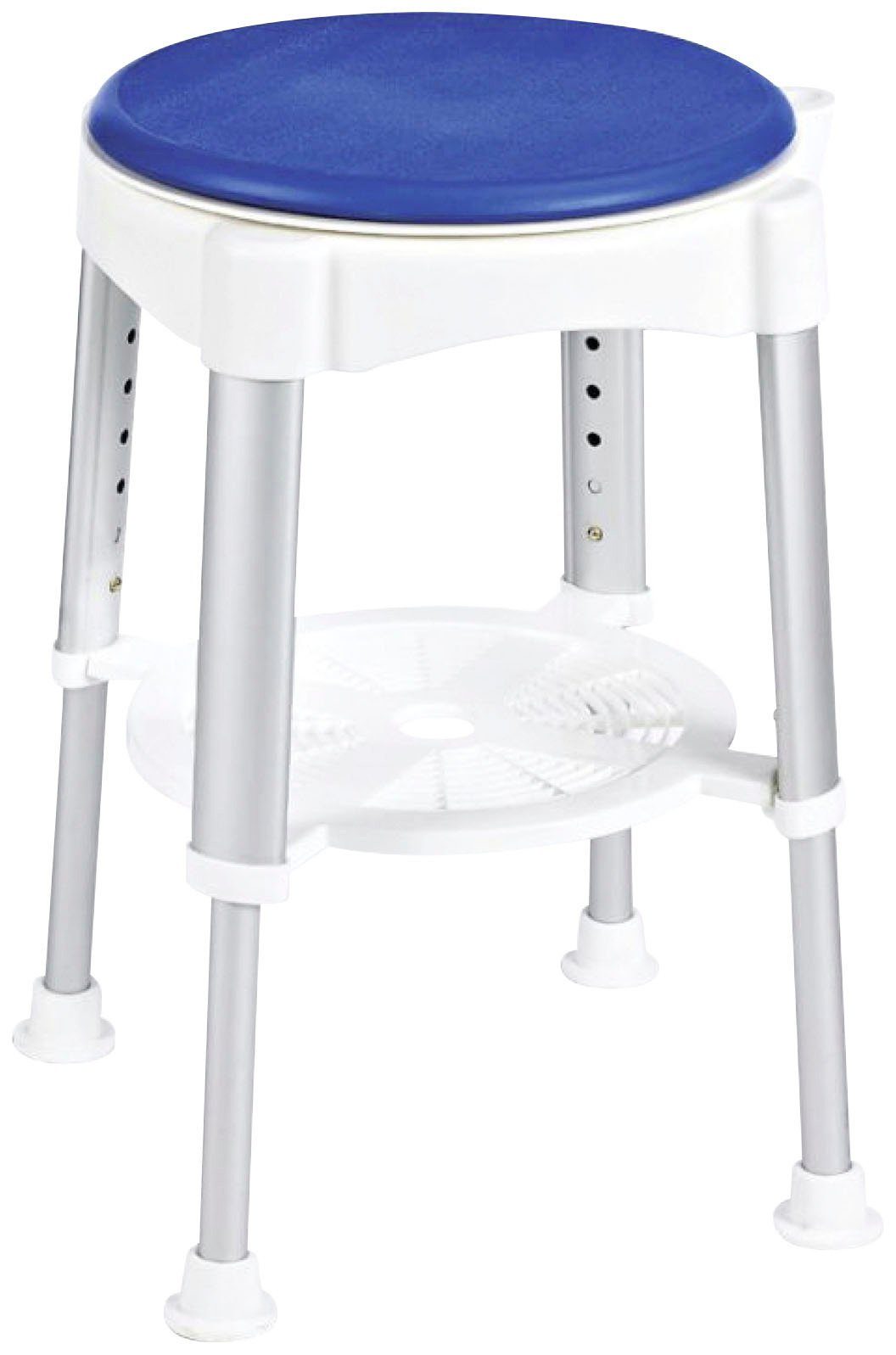 Der Duschhocker von Maximex - für sicheres und komfortables Duschen im Sitzen. Der hochwertige Duschhocker von Maximex bietet sichere Unterstützung in Bad und Küche – gedacht für Menschen, denen langes Stehen schwerfällt – dieser Duschhocker besitzt viele praktische Funktionen, um Ihnen den Alltag zu erleichtern. Das ausgewählte Material und die integrierten Funktionen erfüllen höchste Qualitätsansprüche. Der Duschhocker ist besonders stabil und bietet besondere Sicherheit und Komfort. Die stabilen Standbeine aus rostfreiem Aluminium sorgen für einen sicheren Stand. Gleichzeitig sind sie 7-fach höhenverstellbar und lassen sich so stets auf die gewünschte Höhe anpassen. Die 4 großen Anti-Rutsch-Füße bieten zusätzlichen Halt - auch auf nassem Untergrund. Die Sitzfläche, mit einem Durchmesser von 35 cm, besteht aus einem leicht nachgebendem PU-Schaum – dieser macht die Sitzoberfläche weich und anpassbar - für ein bequemes und sicheres Sitzgefühl. Die Sitzfläche kann mittels integriertem Bedienhebel gedreht werden, nach einer Vierteldrehung arretiert sich die Sitzfläche automatisch. Zudem ist der Duschhocker mit einer praktischen Ablage ausgestattet, hier können Shampoo und Duschgel sicher und immer griffbereit aufbewahrt werden. Maße: Sitzfläche Ø ca. 35 cm, Höhe: von ca. 41,5 - 59 cm, Tragkraft: 150 kg. Materialien: Hockerbeine: Aluminium, Sitzfläche: Polyurethan, Rahmen und Ablage: Polypropylen.