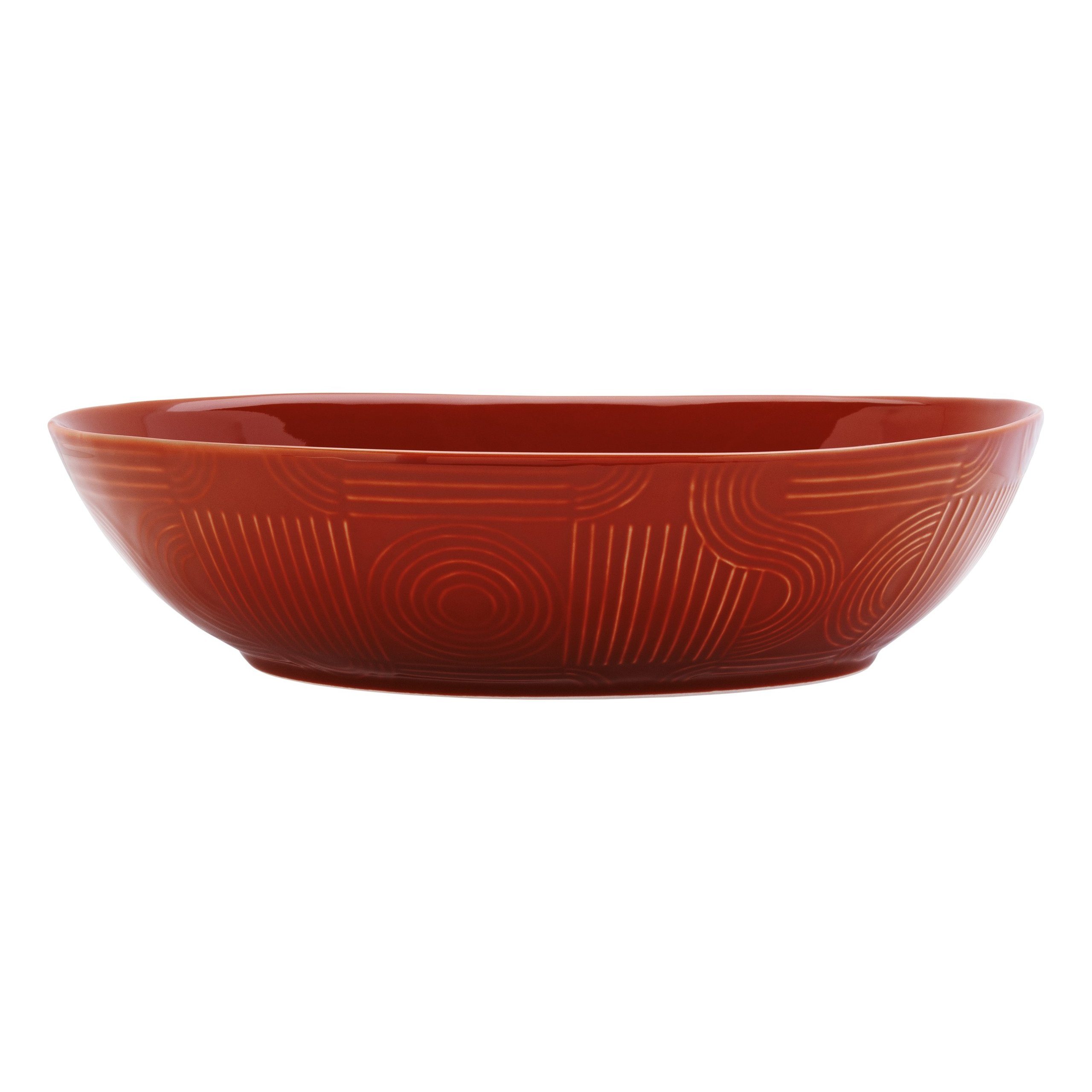 Salat, Gemüse, Frisches aus der Region ‐ in dieser ovalen Schale in erdigem Terracotta kommen insbesondere herkömmliche Gerichte und Zutaten aus der bodenständigen Küche stilvoll zur Geltung. Die ovale Schale in handlichem Format setzt mit wohl strukturiertem Kammmuster auf außergewöhnliche Optik und Griffigkeit und ist Teil eines umfangreichen Services aus der rustikal aufgemachten Country‐Kollektion Arc.