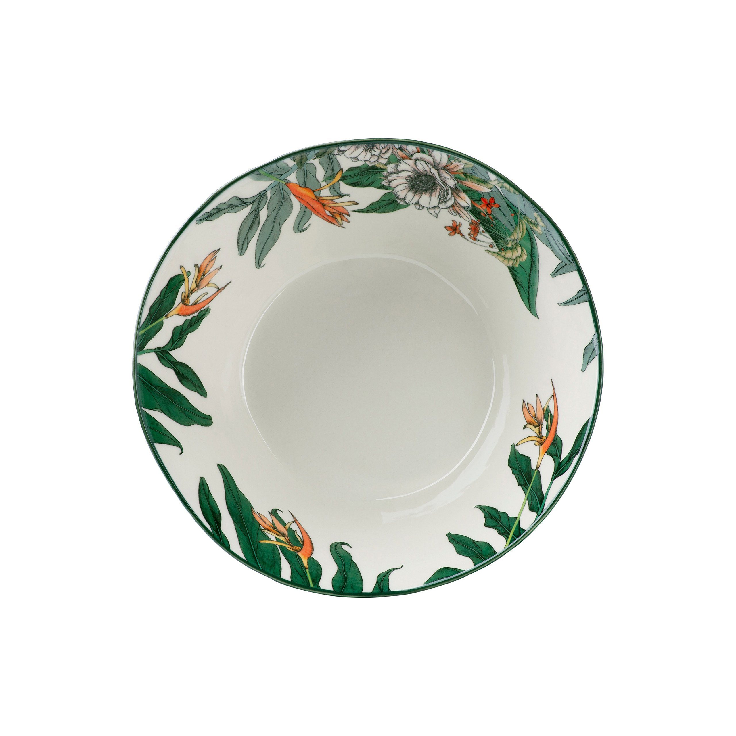 Duftende Blüten, üppige Blätter ‐ ein wirklich prachtvolles Naturschauspiel, das sich da des Nachts entfaltet und hier die florale Kollektion Night Garden überzieht. So wie die runde Servierschale aus hochwertigem Porzellan, auf der Sie leckere Köstlichkeiten elegant auftischen. Traumhaft kombinieren lässt sich die runde Schüssel in orange‐grüner Farb‐Atmosphäre übrigens nicht nur mit allen Artikeln der eigenen Serie mit den Dekoren Blumen und Laub, sondern auch mit reinweißem Porzellan.