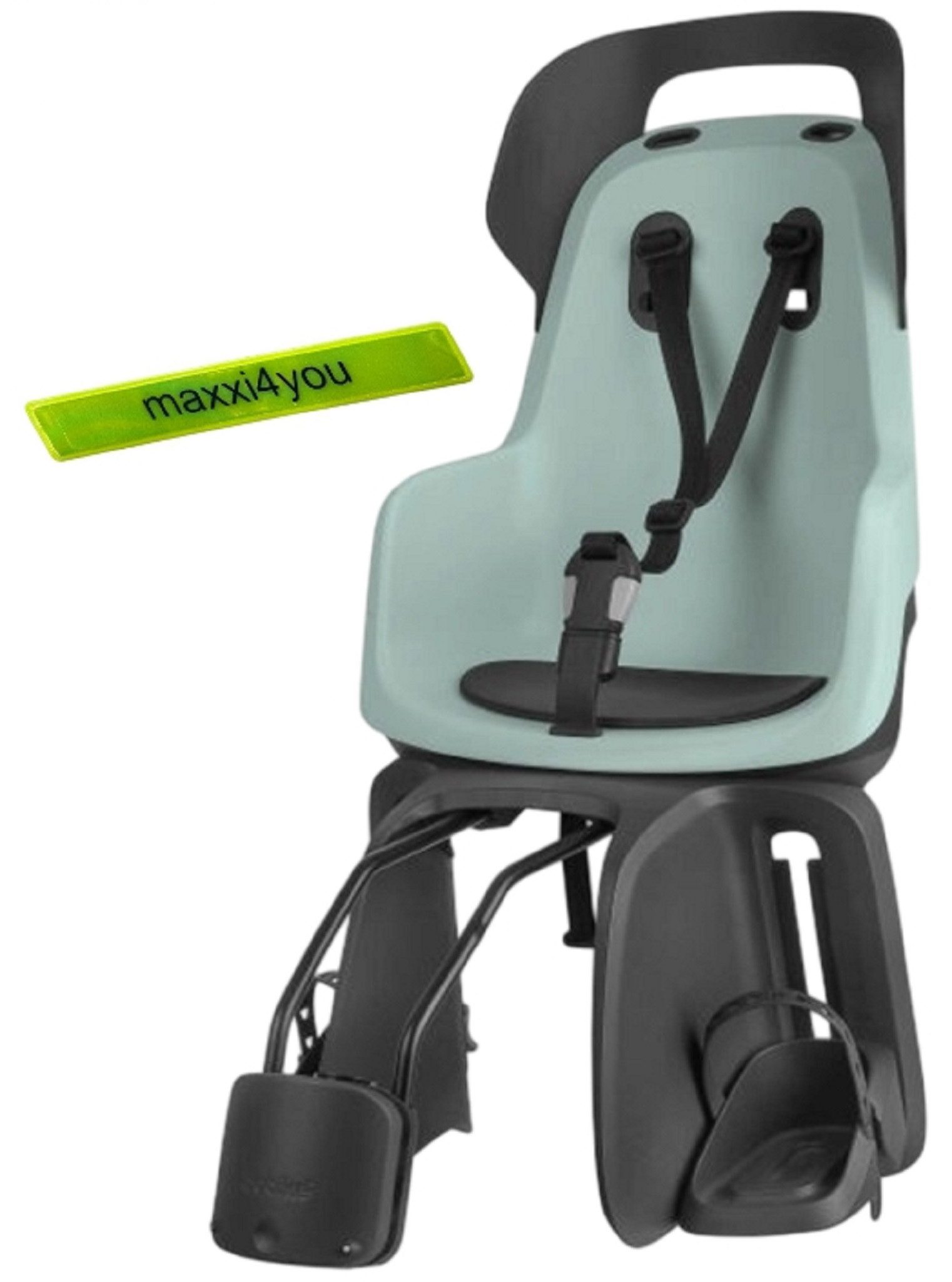 1 x Bobike GO 1P Kinderfahrradsitz Hinten Rahmenbefestigung Marsmallow Mint inkl. maxxi4you Reflexband