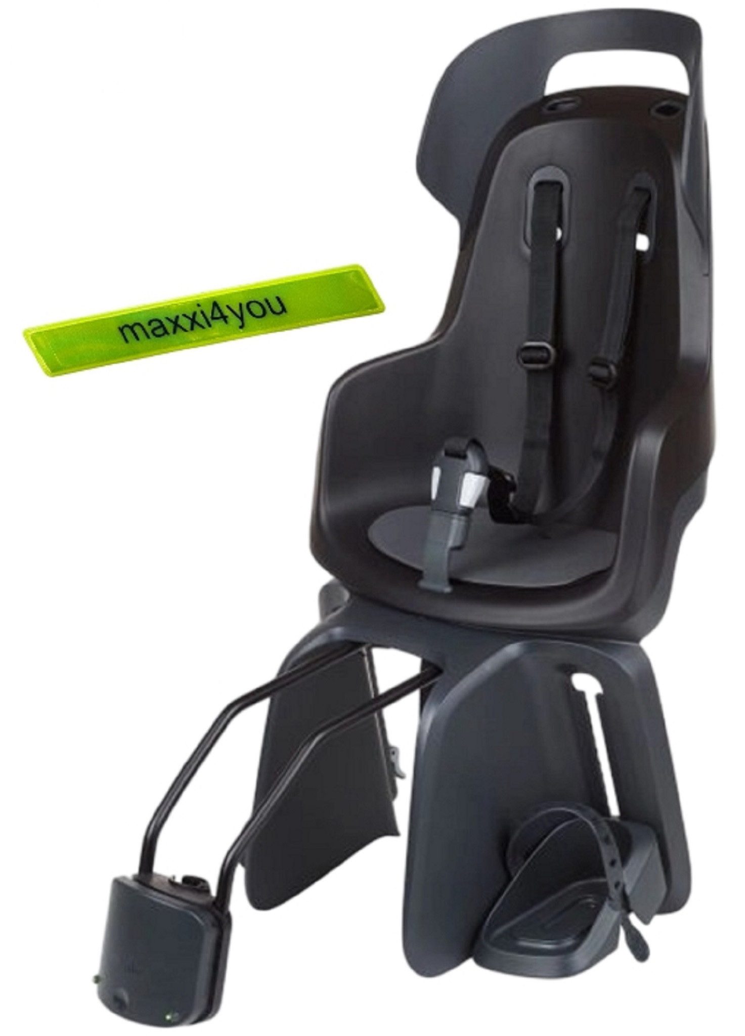 1 x Bobike GO 1P Kinderfahrradsitz Hinten Rahmenbefestigung Urban Black inkl. maxxi4you Reflexband