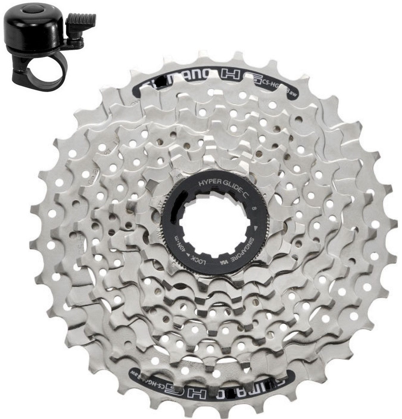 Shimano CS-HG41 in der 8-fach Abstufung mit Hyperglide-Technologie sorgt für flüssige, schnelle und leise Schaltvorgänge. Die Kassette stammt aus der Acera-Gruppe.