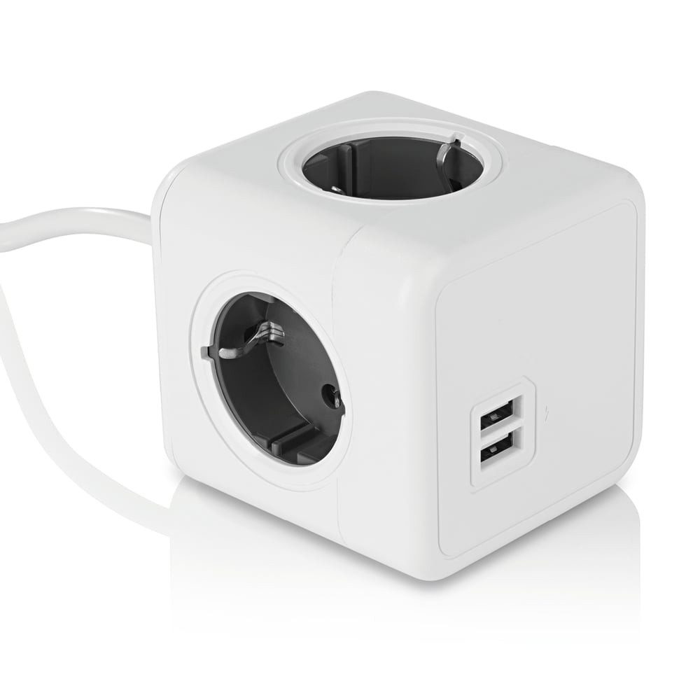 Ausstattung | 1 x Würfelsteckdose mit 4 Netzstecker-Anschlüssen und 2 USB-A-Anschlüssen, 1 x Wandhalterung, 2 x Klebepad zur Befestigung der Wandhalterung |